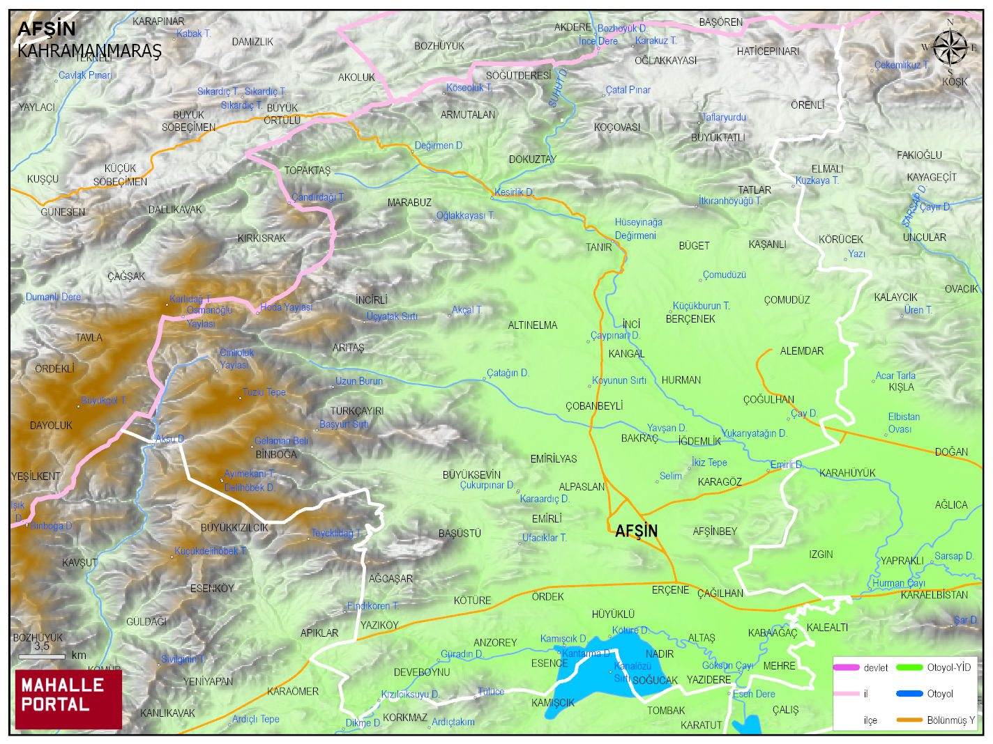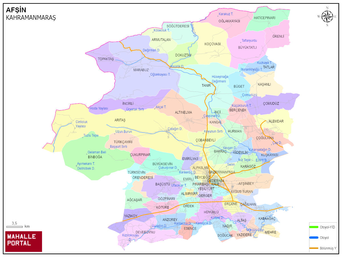 AFŞİN Mahalle Köy Haritası | İlçe Mahalleleri ve Köy Sınırları