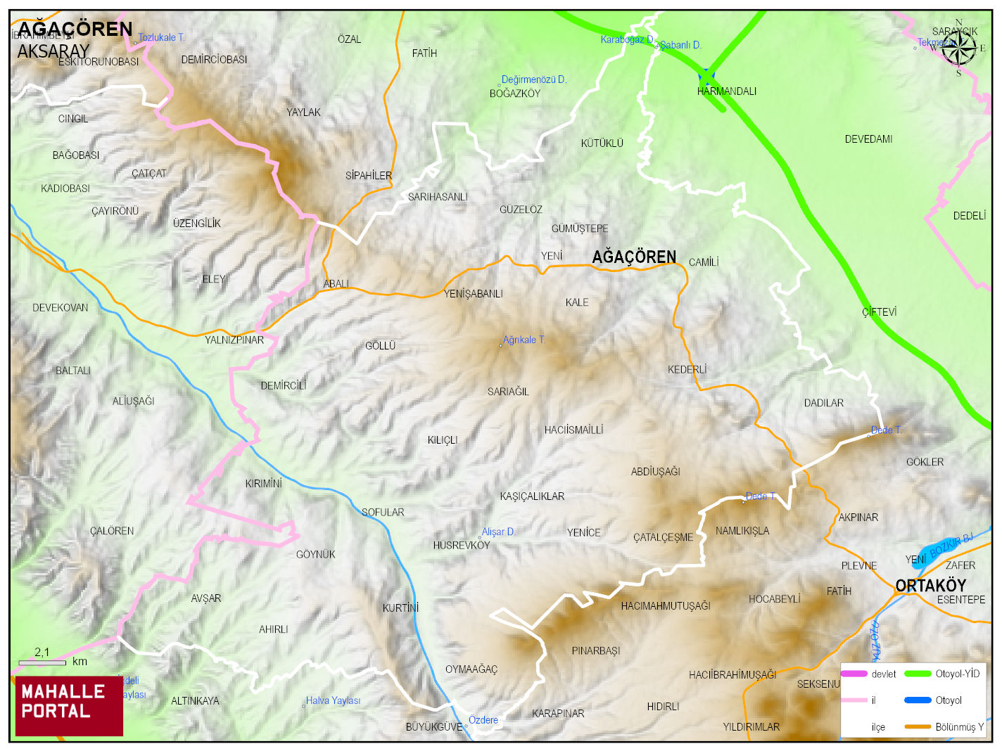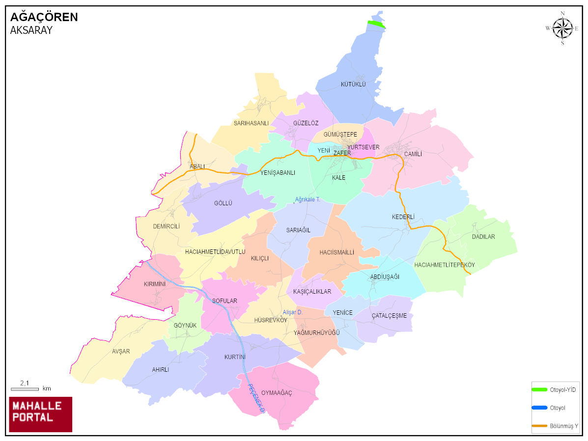 AĞAÇÖREN, AKSARAY Dijital Haritası | İnteraktif İlçe ve Mahalle Sınırları
