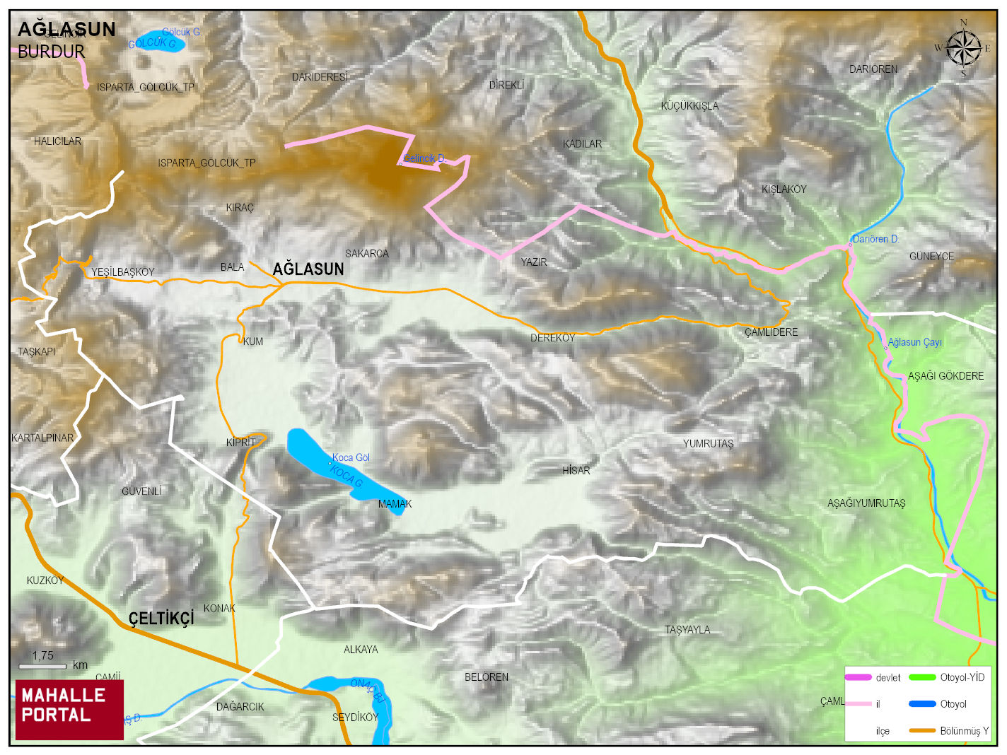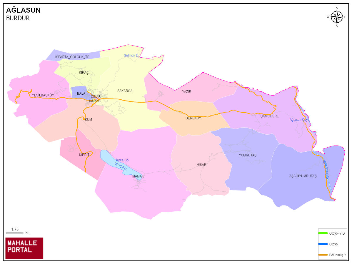 AĞLASUN, BURDUR Dijital Haritası | İnteraktif İlçe ve Mahalle Sınırları
