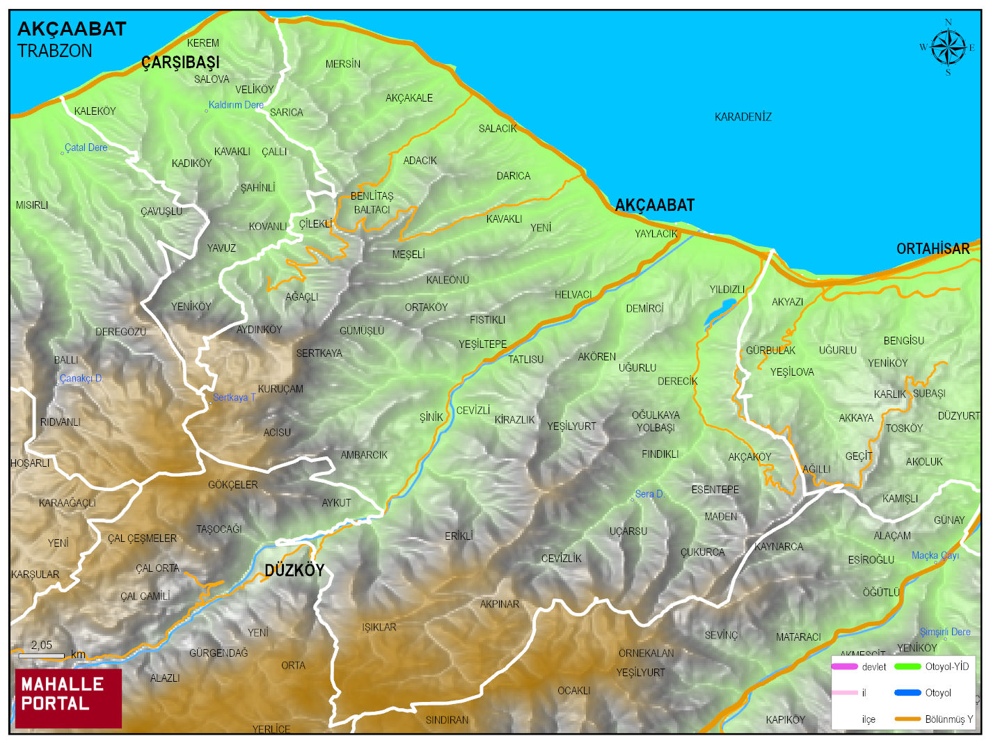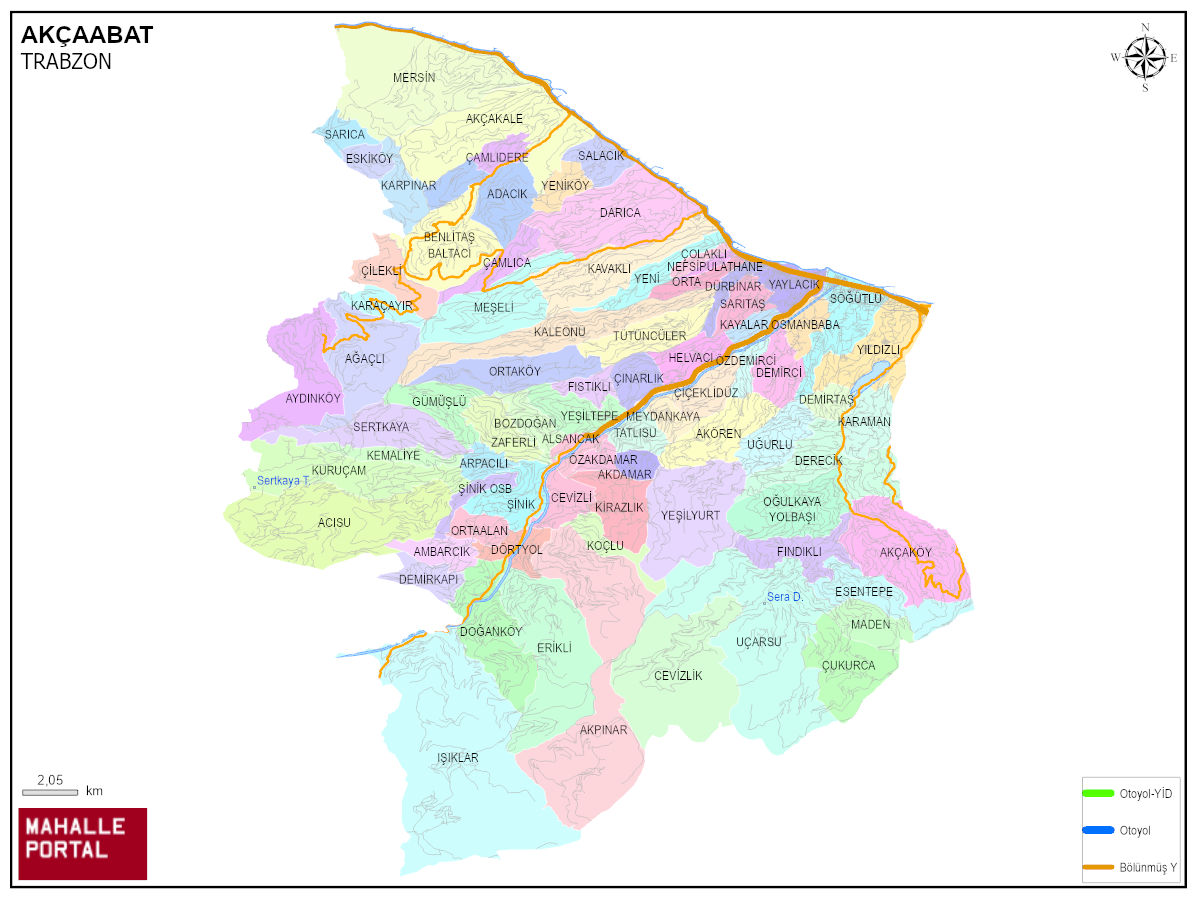 AKÇAABAT Mahalle Köy Haritası | İlçe Mahalleleri ve Köy Sınırları