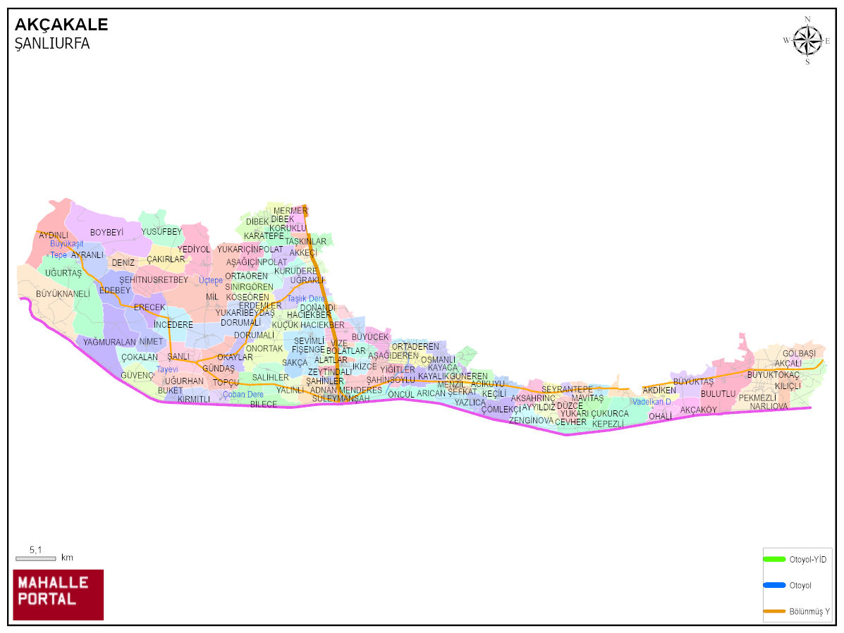 AKÇAKALE, ŞANLIURFA Dijital Haritası | İnteraktif İlçe ve Mahalle Sınırları