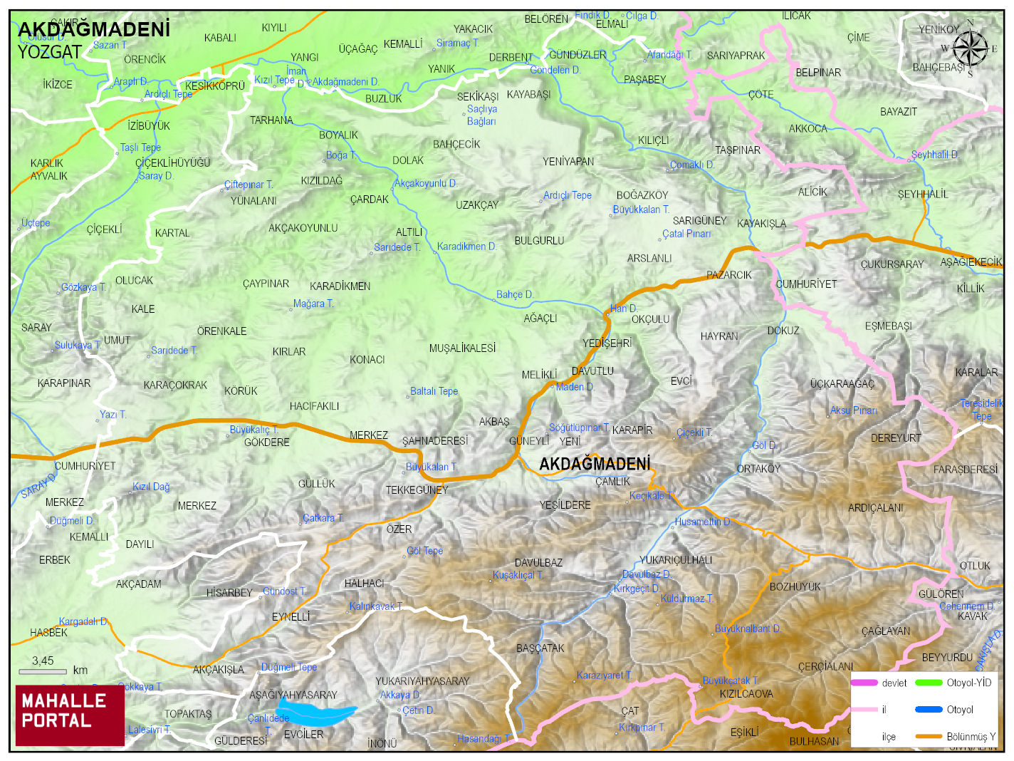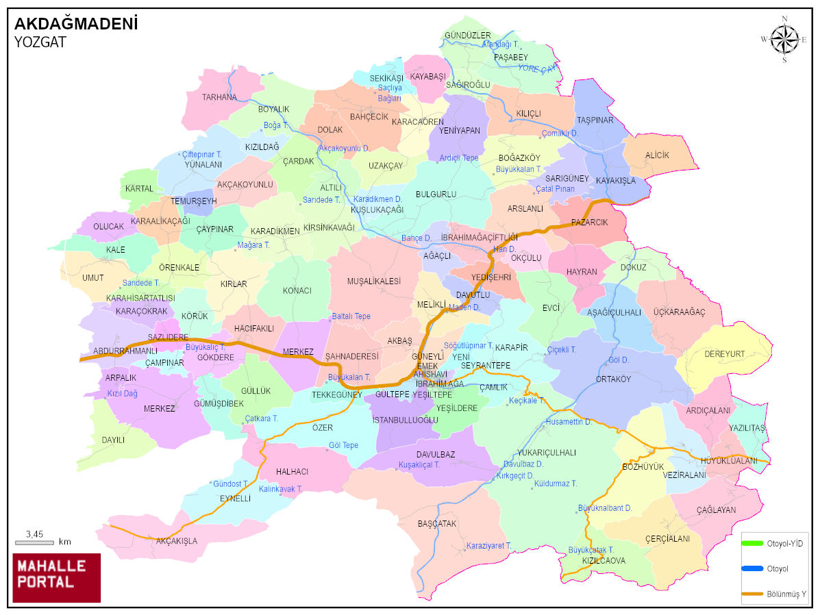 AKDAĞMADENİ, YOZGAT Dijital Haritası | İnteraktif İlçe ve Mahalle Sınırları