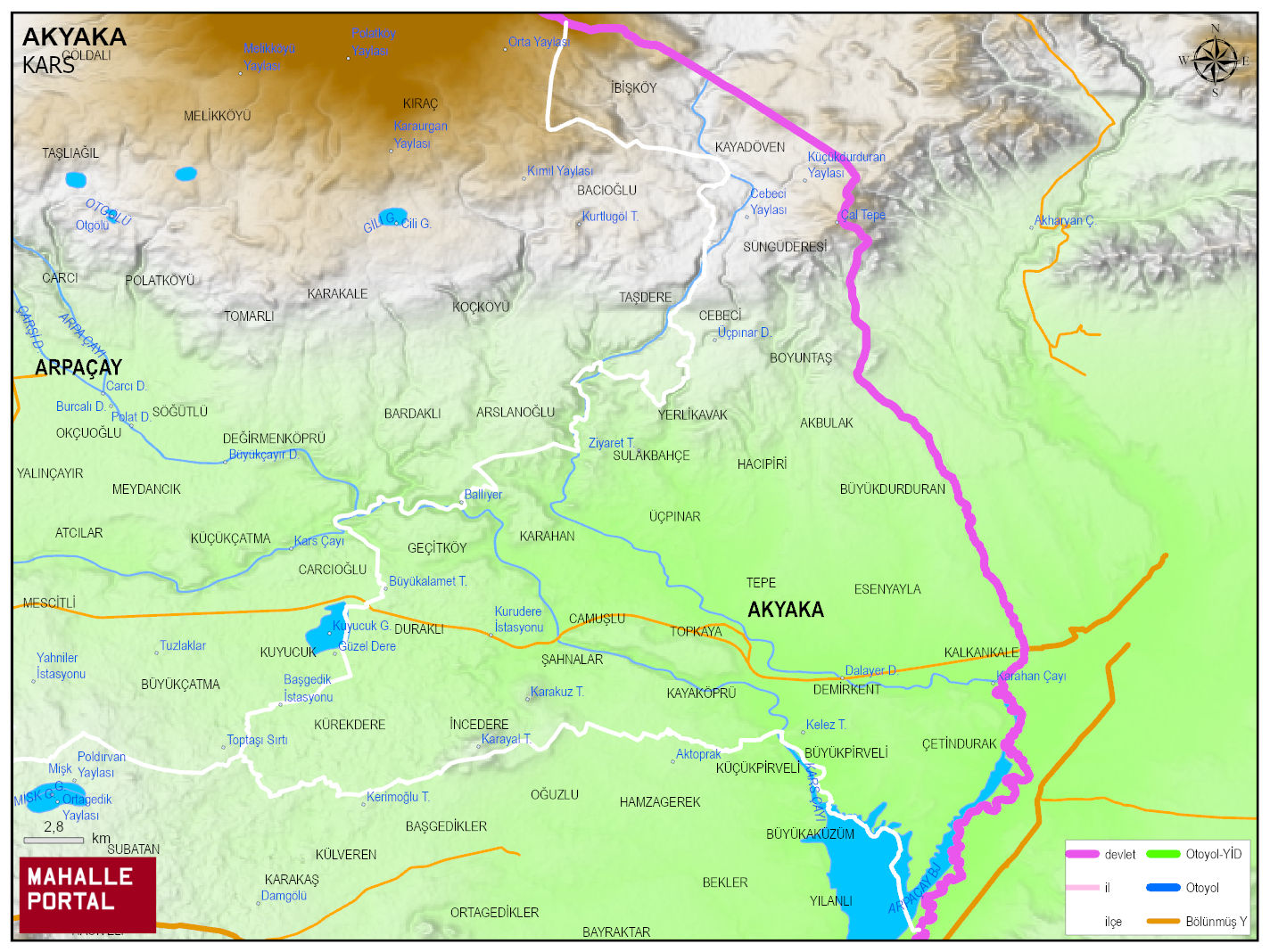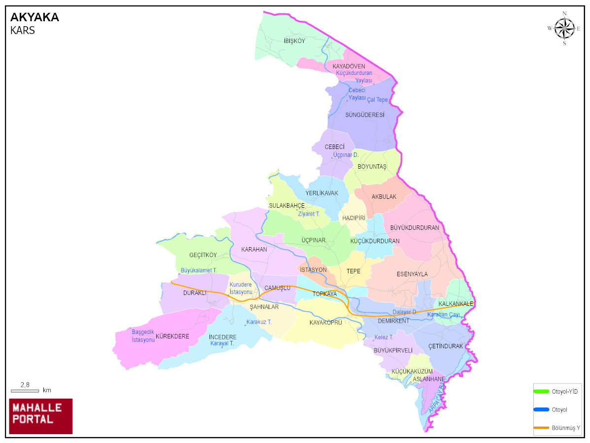 AKYAKA, KARS Dijital Haritası | İnteraktif İlçe ve Mahalle Sınırları