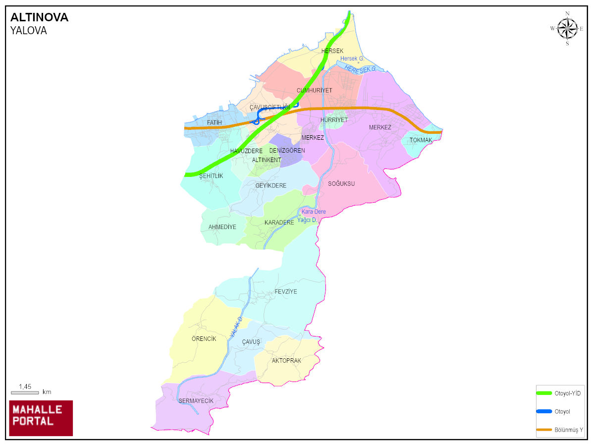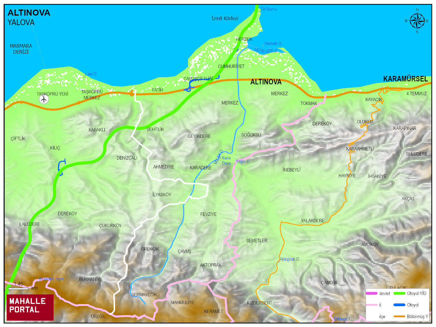 ALTINOVA, YALOVA Dijital Haritası | İnteraktif İlçe ve Mahalle Sınırları