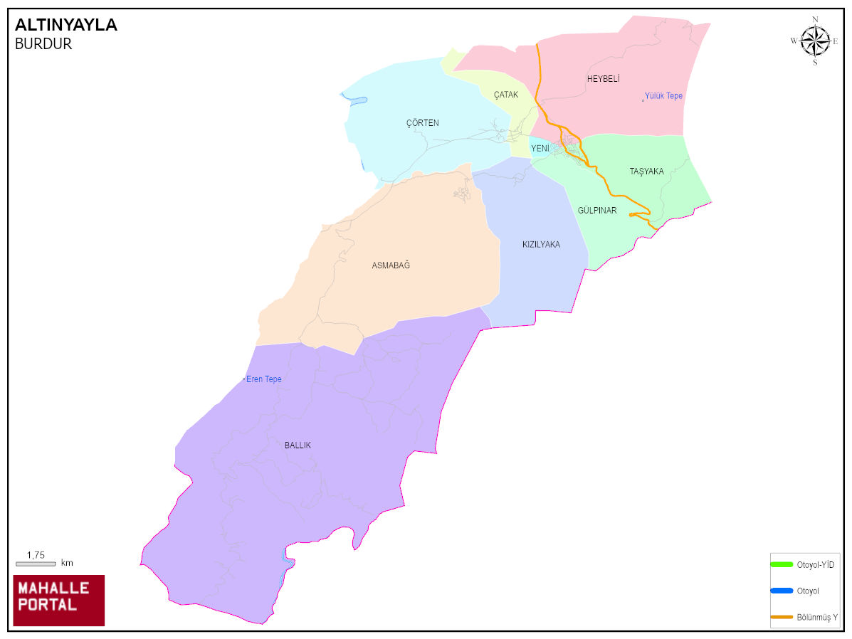 ALTINYAYLA, BURDUR Dijital Haritası | İnteraktif İlçe ve Mahalle Sınırları