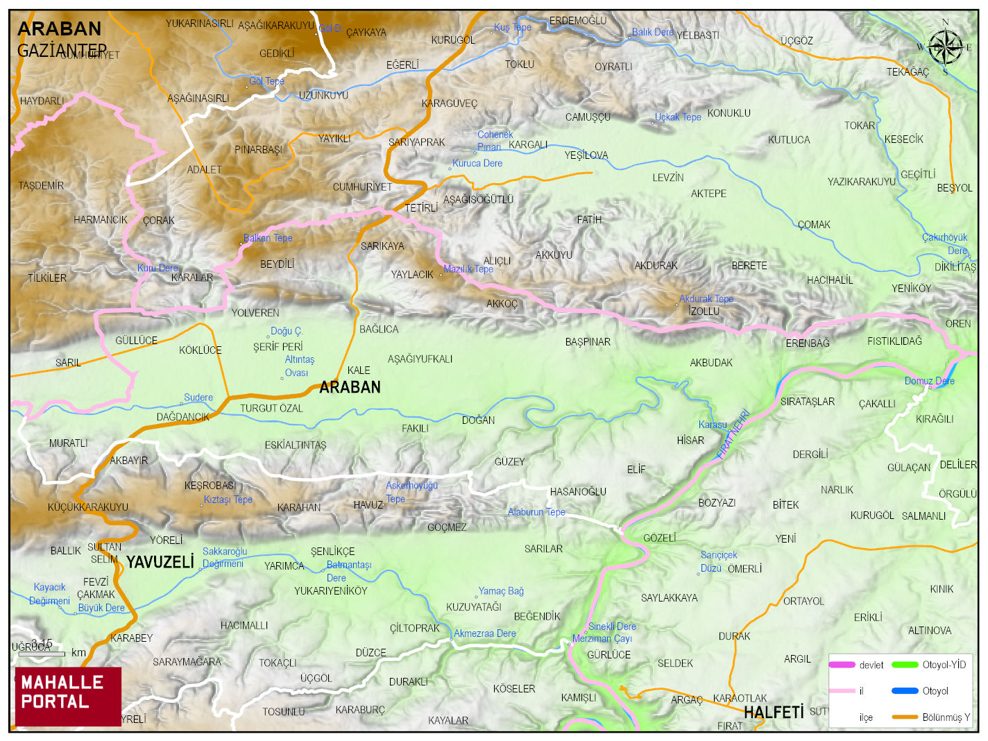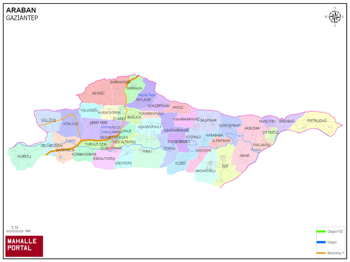 ARABAN, GAZİANTEP Dijital Haritası | İnteraktif İlçe ve Mahalle Sınırları