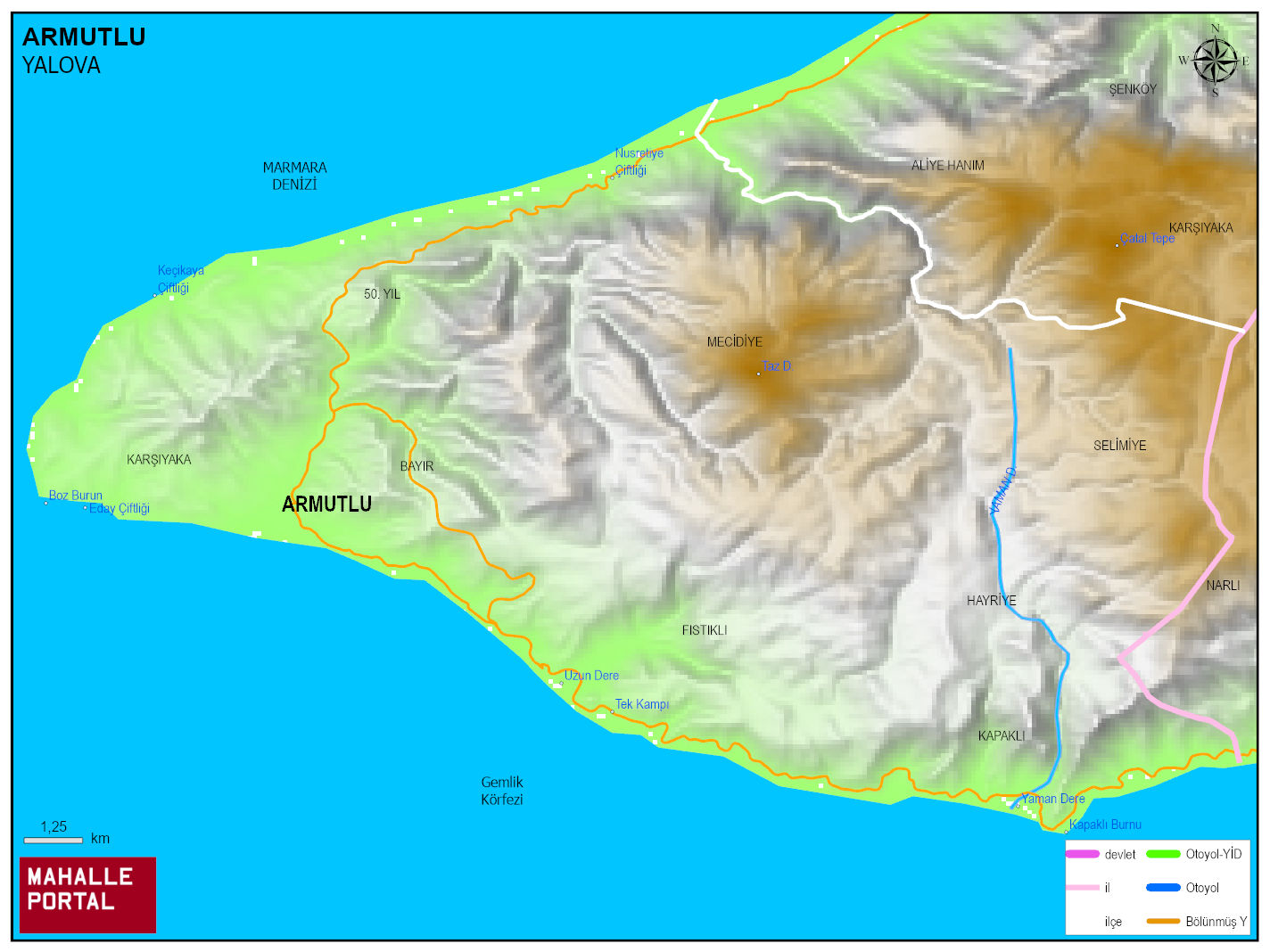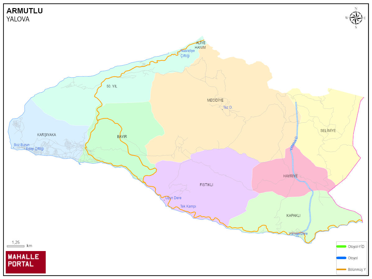 ARMUTLU, YALOVA Dijital Haritası | İnteraktif İlçe ve Mahalle Sınırları