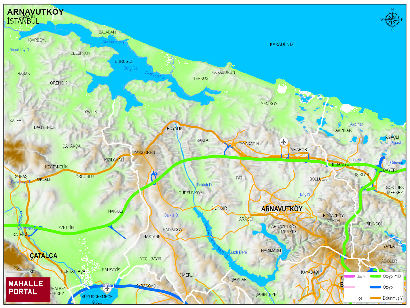 ARNAVUTKÖY Fiziki Haritası | Dağlar, Ovalar ve Akarsu Bilgileri