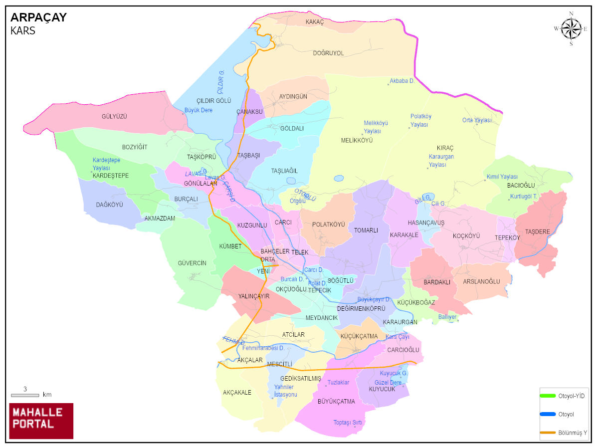 ARPAÇAY, KARS Dijital Haritası | İnteraktif İlçe ve Mahalle Sınırları
