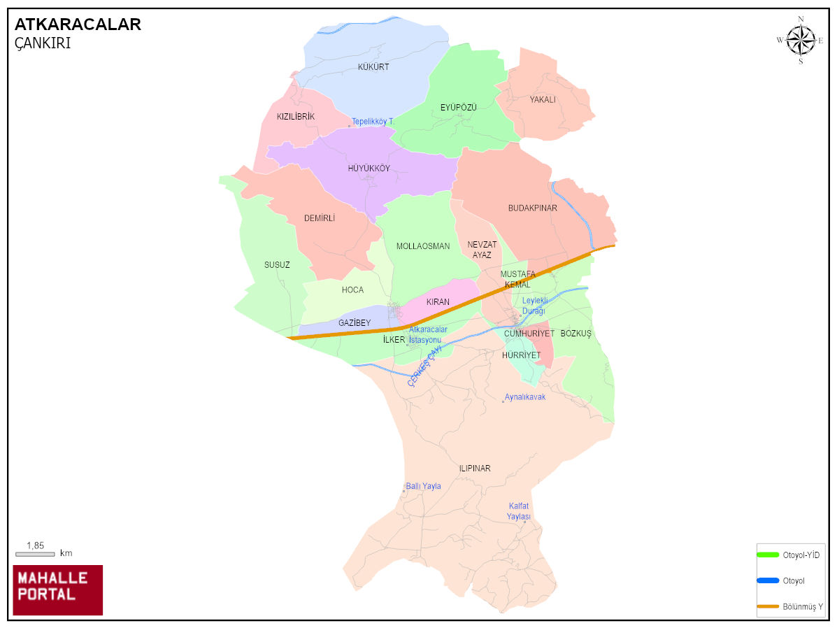 ATKARACALAR, ÇANKIRI Dijital Haritası | İnteraktif İlçe ve Mahalle Sınırları