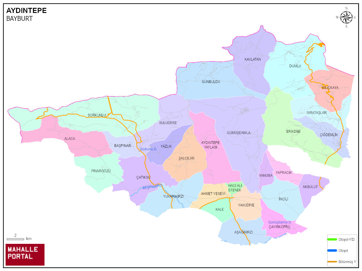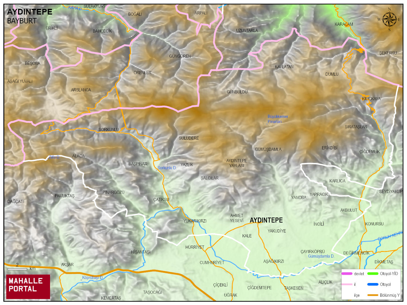 AYDINTEPE, BAYBURT Dijital Haritası | İnteraktif İlçe ve Mahalle Sınırları