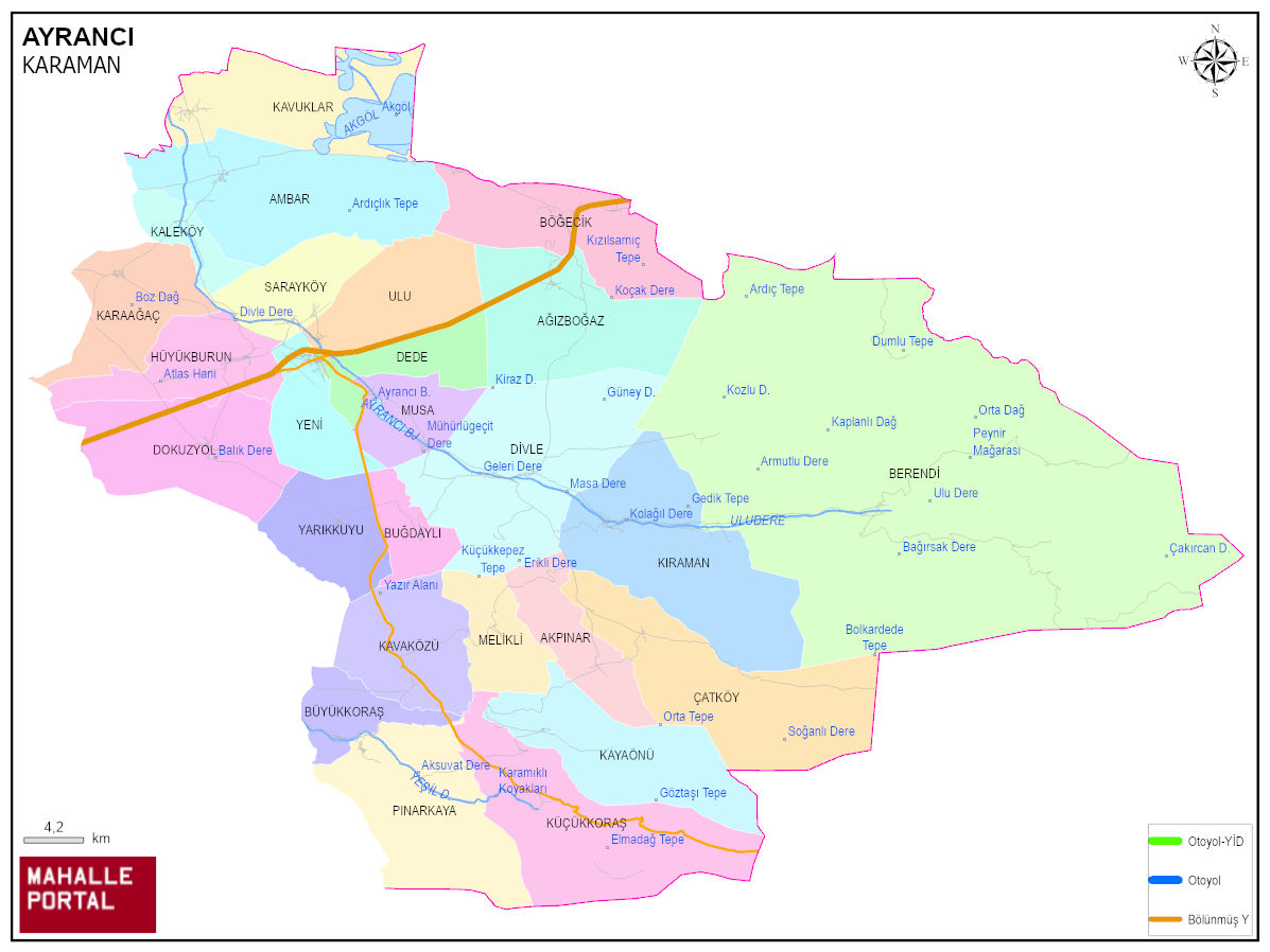 AYRANCI, KARAMAN Dijital Haritası | İnteraktif İlçe ve Mahalle Sınırları