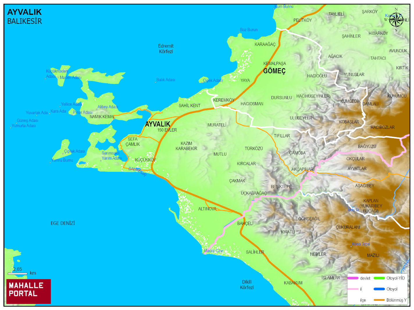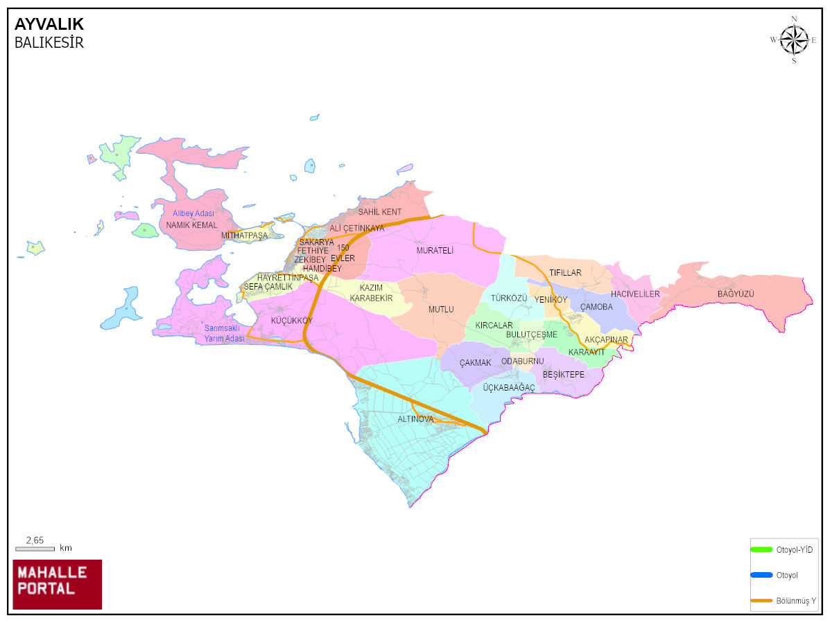 AYVALIK, BALIKESİR Dijital Haritası | İnteraktif İlçe ve Mahalle Sınırları