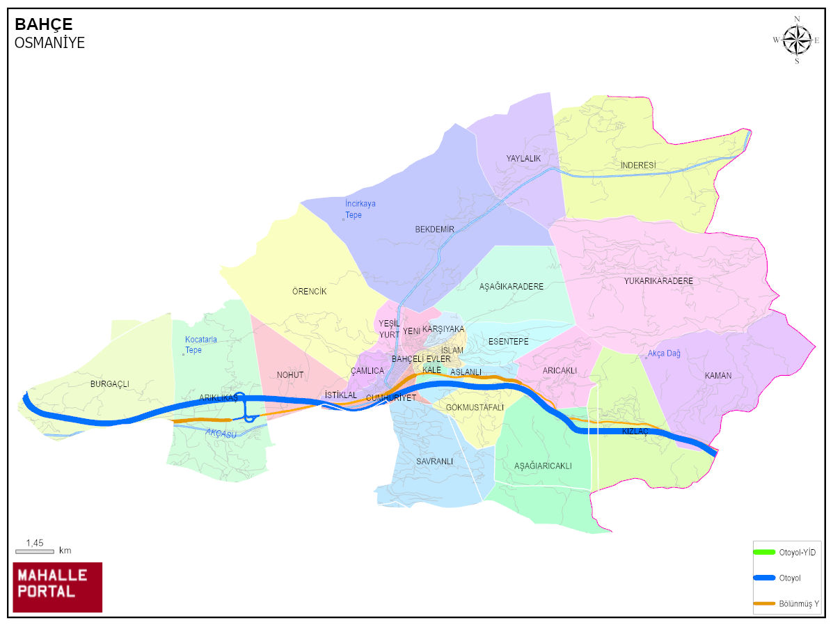 BAHÇE, OSMANİYE Dijital Haritası | İnteraktif İlçe ve Mahalle Sınırları