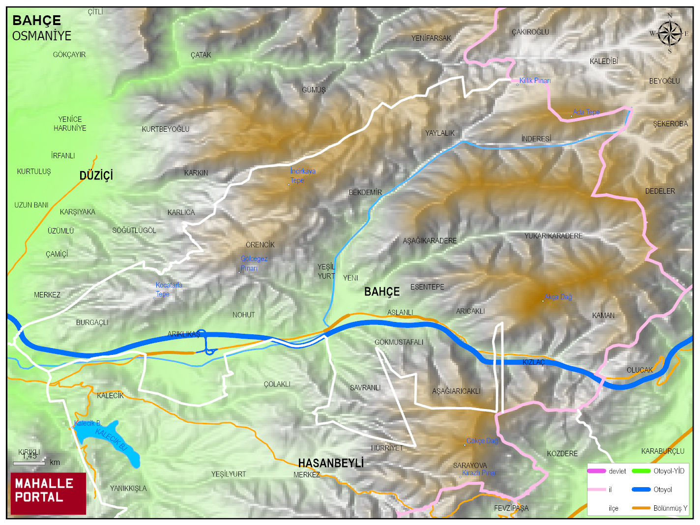 BAHÇE Fiziki Haritası | Dağlar, Ovalar ve Akarsu Bilgileri