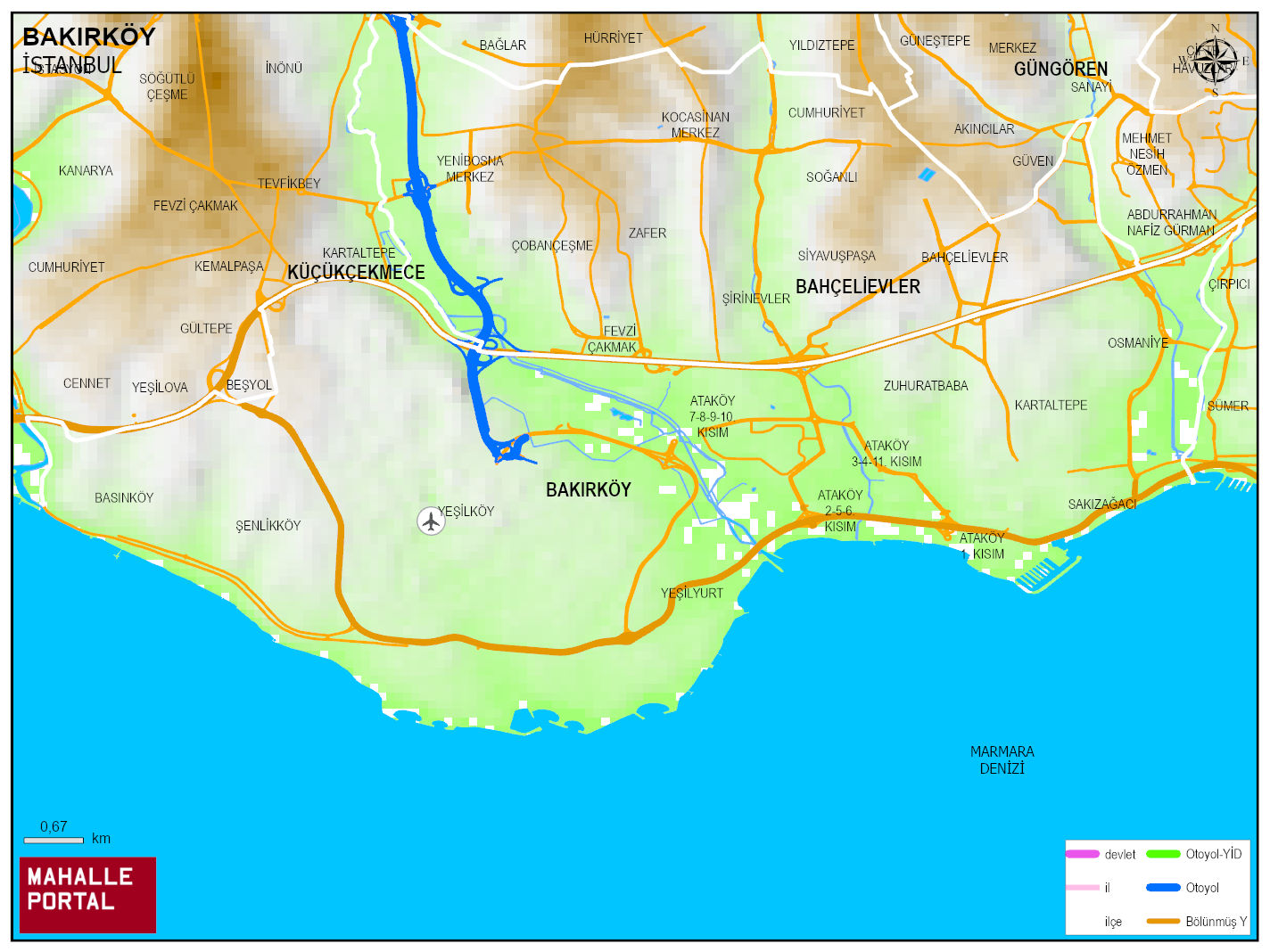 BAKIRKÖY Fiziki Haritası | Dağlar, Ovalar ve Akarsu Bilgileri