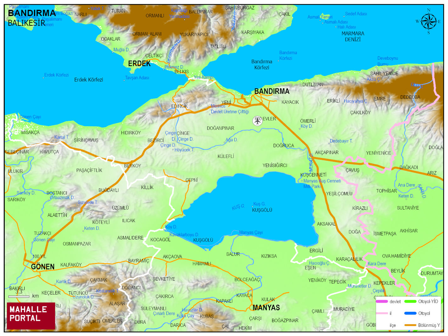 BANDIRMA Fiziki Haritası | Dağlar, Ovalar ve Akarsu Bilgileri