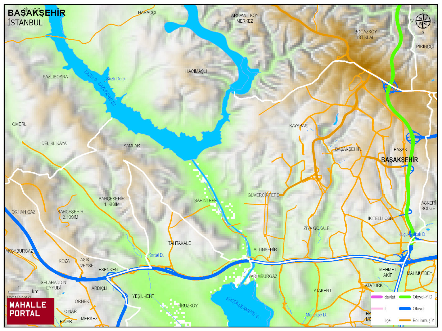 BAŞAKŞEHİR Fiziki Haritası | Dağlar, Ovalar ve Akarsu Bilgileri