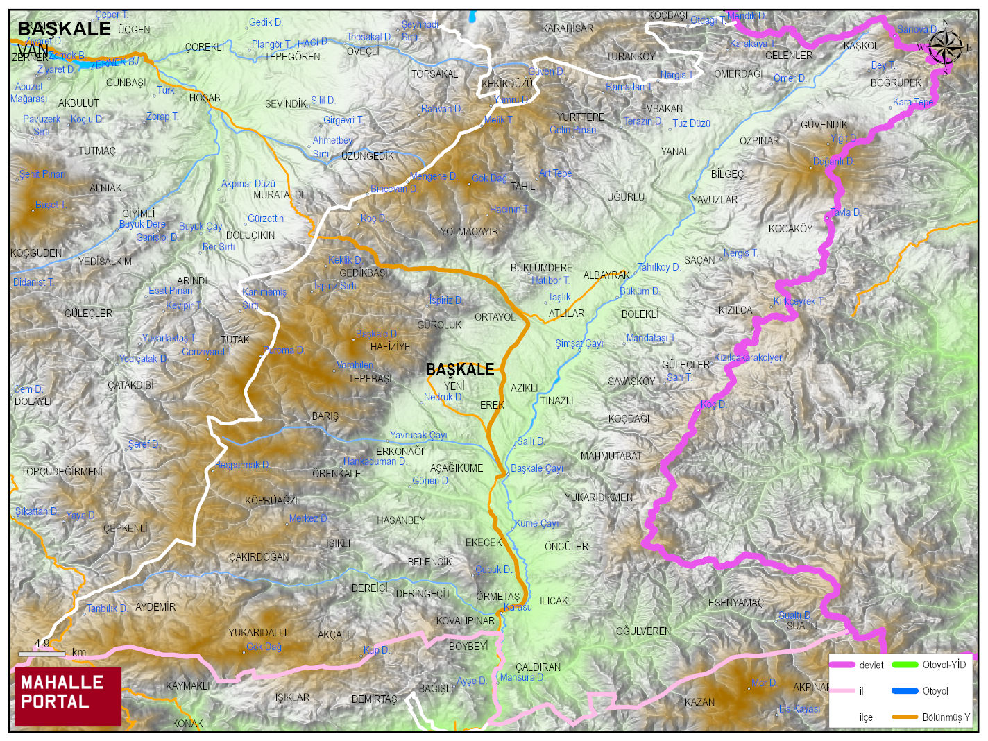 BAŞKALE, VAN Dijital Haritası | İnteraktif İlçe ve Mahalle Sınırları