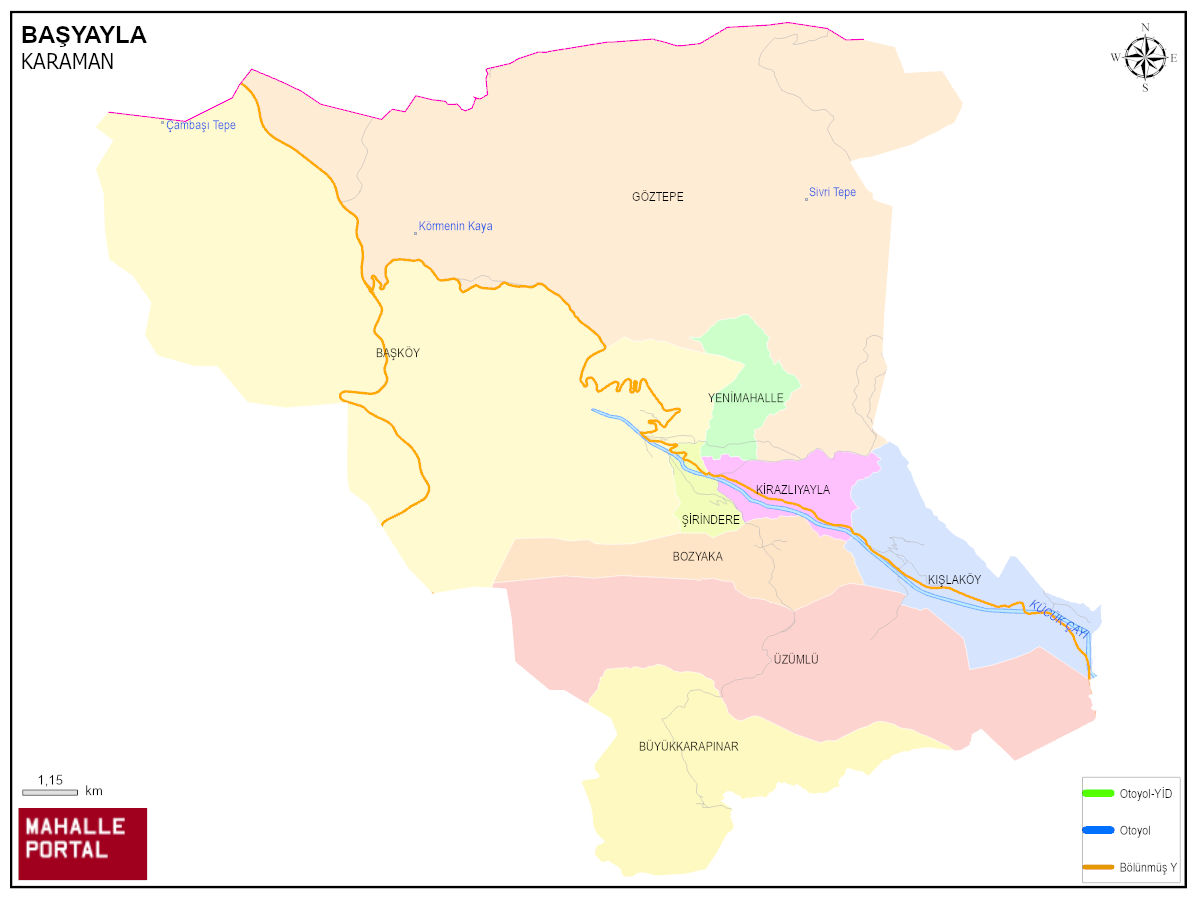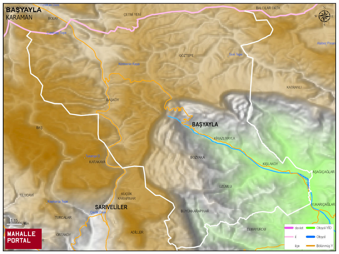 BAŞYAYLA, KARAMAN Dijital Haritası | İnteraktif İlçe ve Mahalle Sınırları