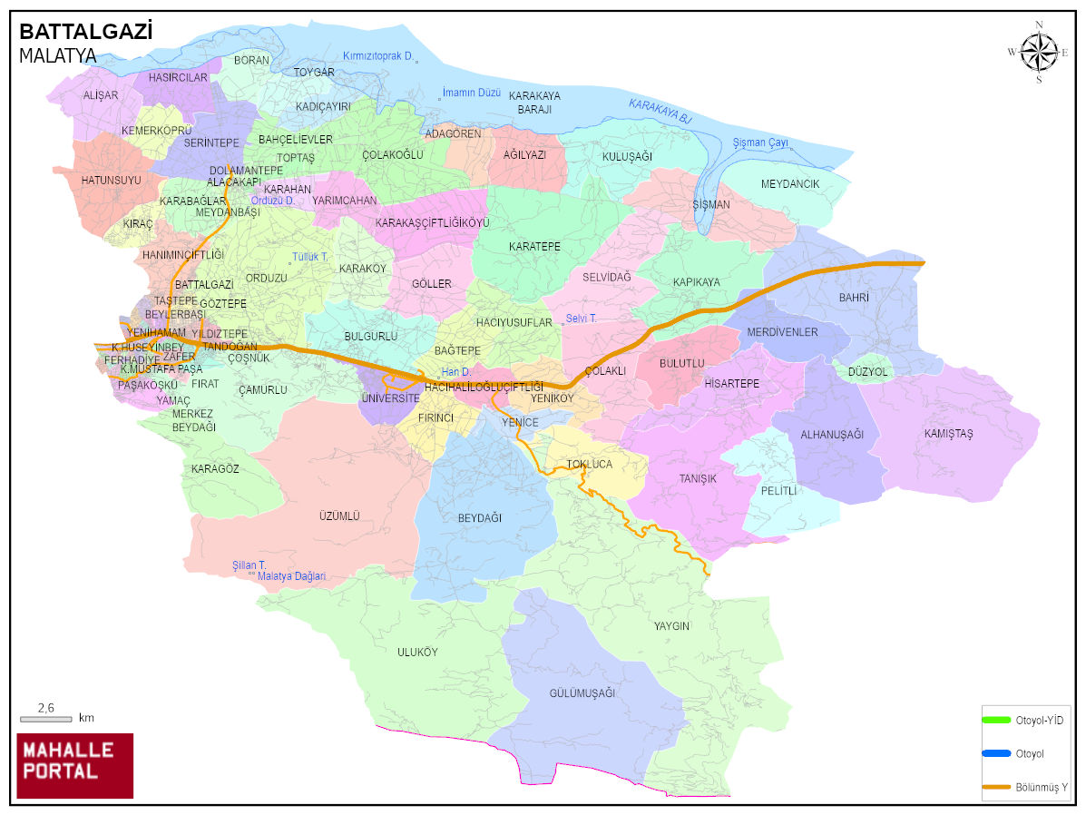 BATTALGAZİ, MALATYA Dijital Haritası | İnteraktif İlçe ve Mahalle Sınırları