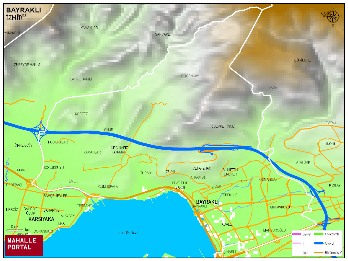 BAYRAKLI, İZMİR Dijital Haritası | İnteraktif İlçe ve Mahalle Sınırları