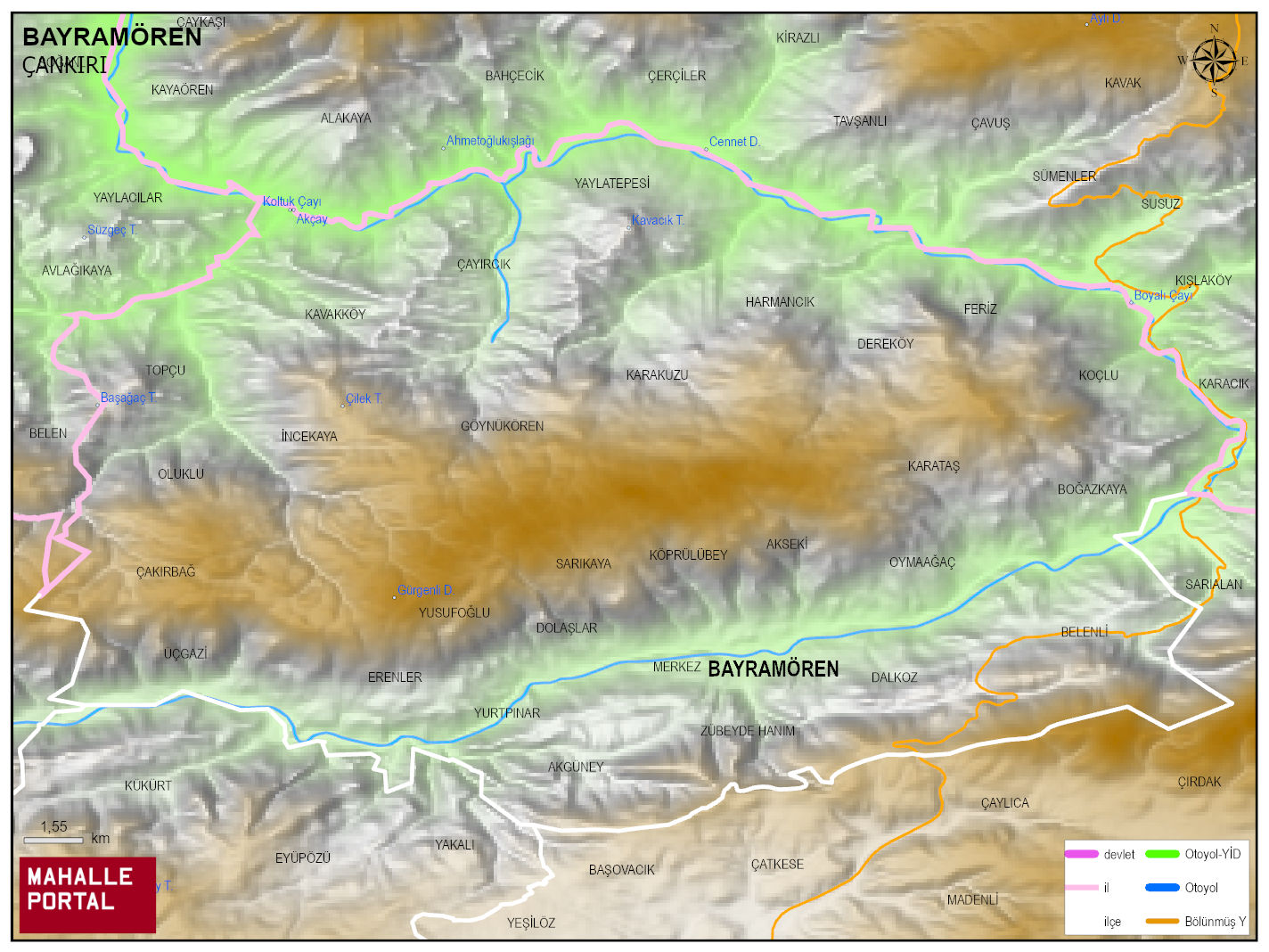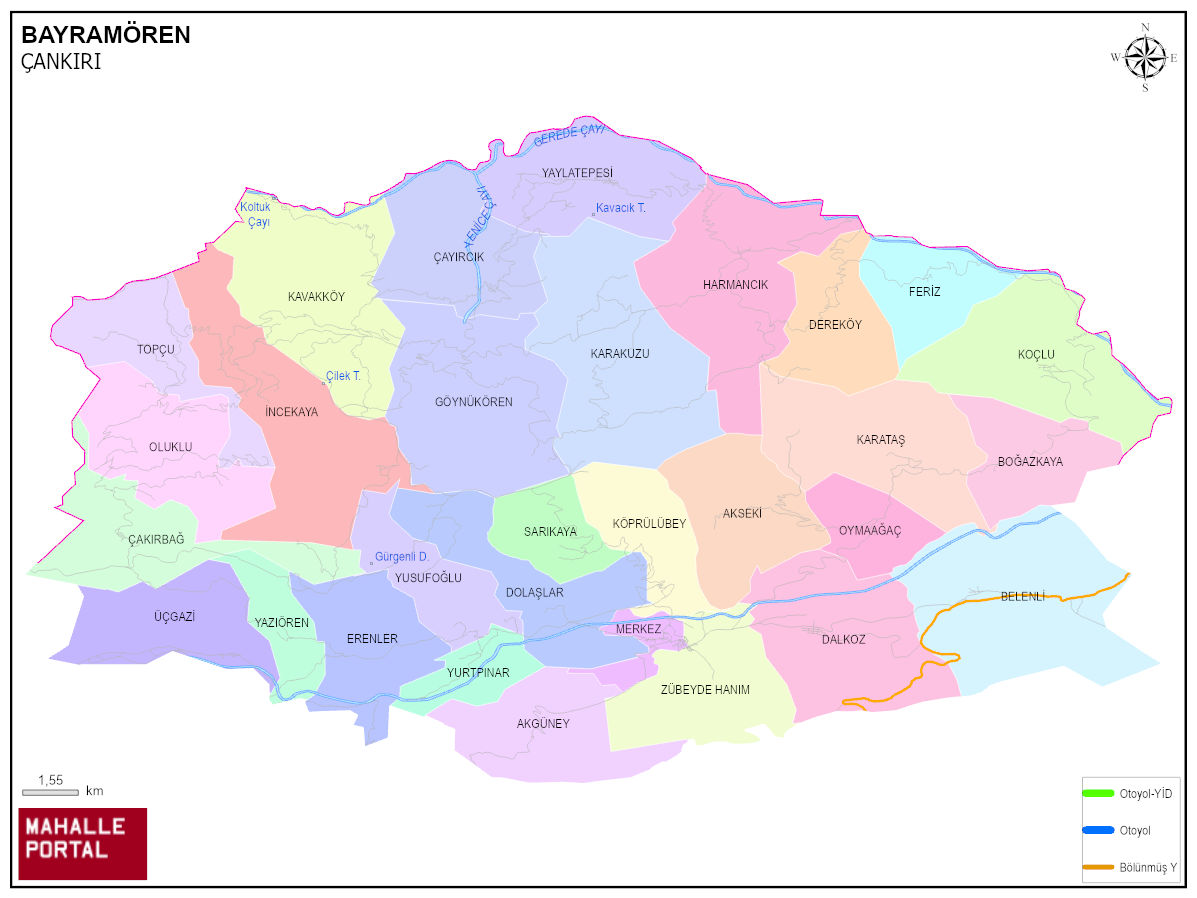 BAYRAMÖREN, ÇANKIRI Dijital Haritası | İnteraktif İlçe ve Mahalle Sınırları