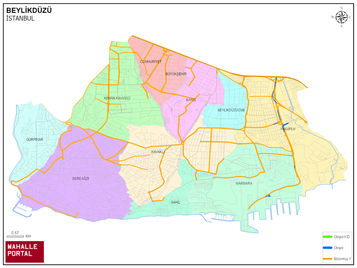 BEYLİKDÜZÜ Mahalle Köy Haritası | İlçe Mahalleleri ve Köy Sınırları