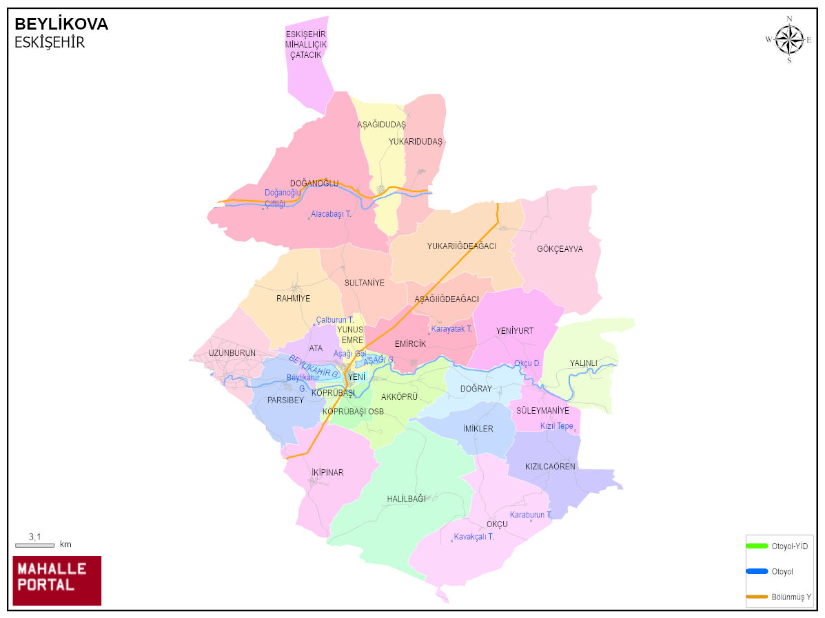 BEYLİKOVA, ESKİŞEHİR Dijital Haritası | İnteraktif İlçe ve Mahalle Sınırları