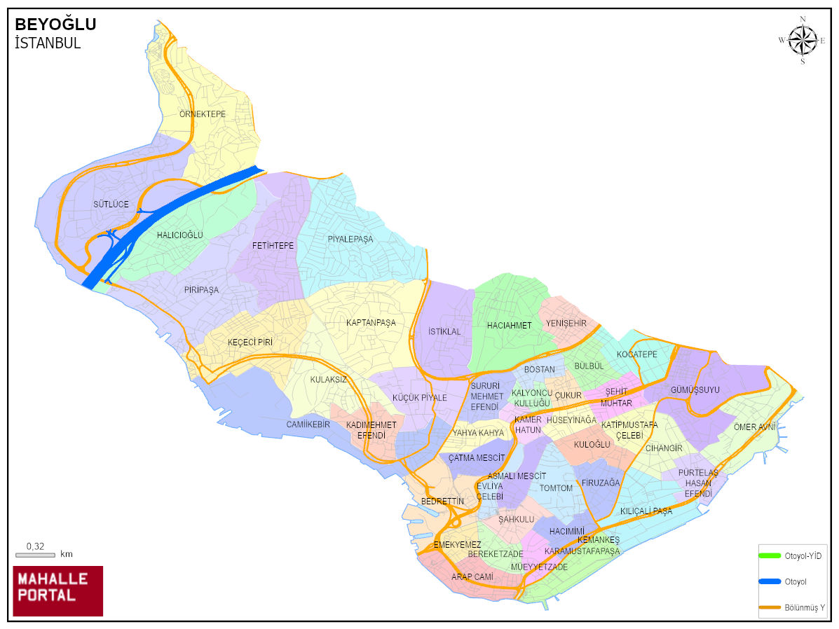 BEYOĞLU, İSTANBUL Dijital Haritası | İnteraktif İlçe ve Mahalle Sınırları