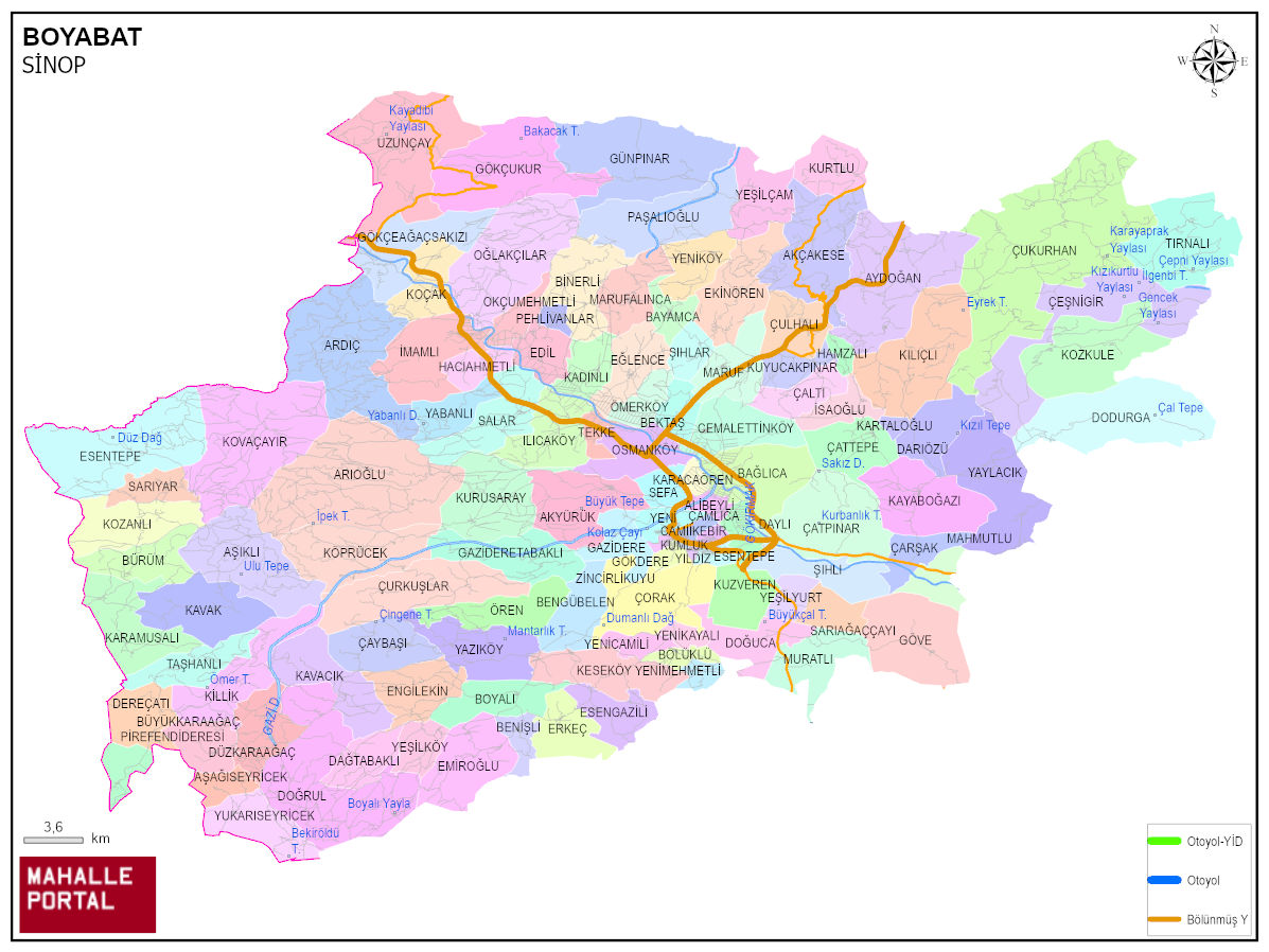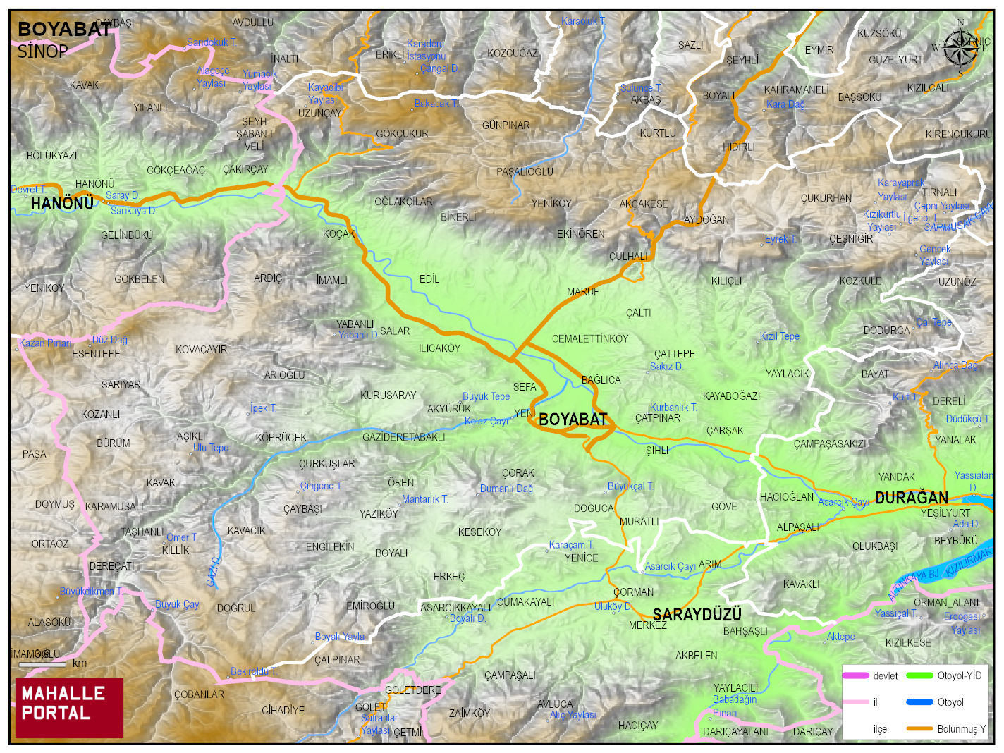 BOYABAT, SİNOP Dijital Haritası | İnteraktif İlçe ve Mahalle Sınırları