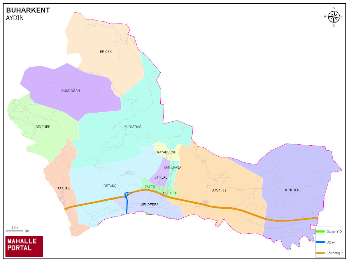 BUHARKENT, AYDIN Dijital Haritası | İnteraktif İlçe ve Mahalle Sınırları