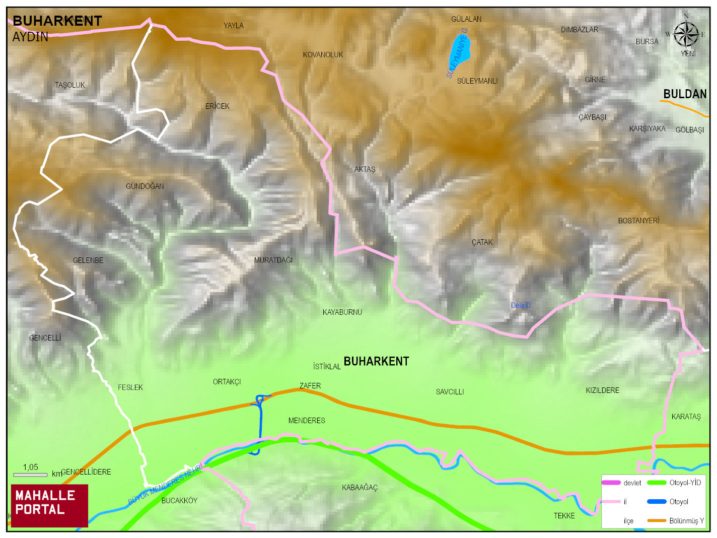 BUHARKENT Fiziki Haritası | Dağlar, Ovalar ve Akarsu Bilgileri