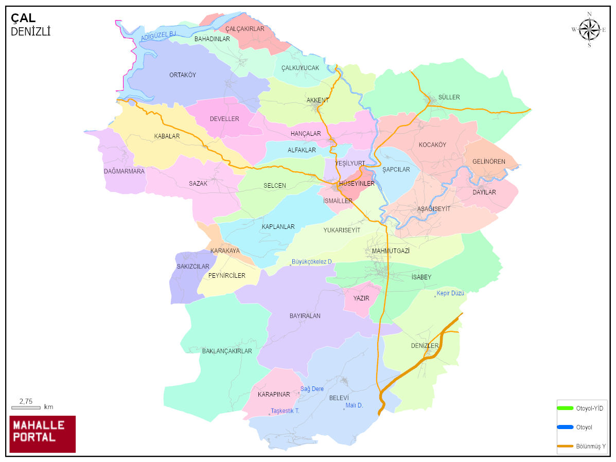 ÇAL, DENİZLİ Dijital Haritası | Güncel Mahalle ve İlçe Haritası