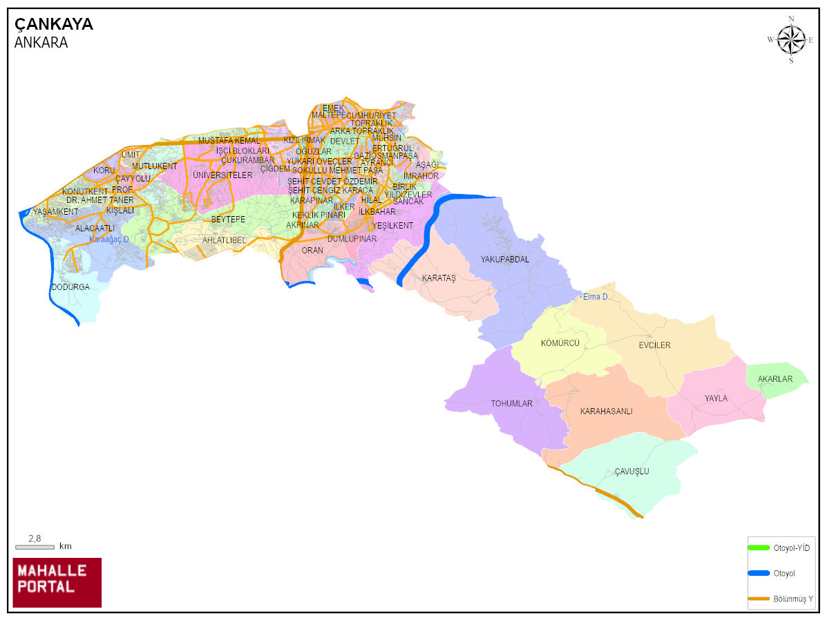 ÇANKAYA Mahalle Köy Haritası | İlçedeki Tüm Mahalle ve Köyler