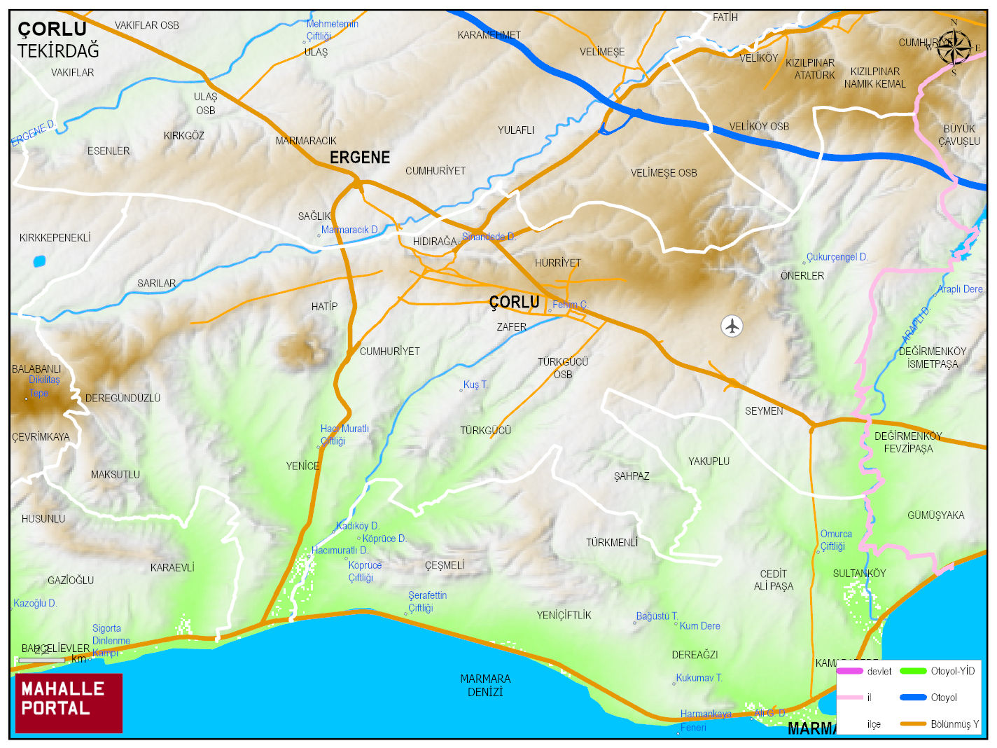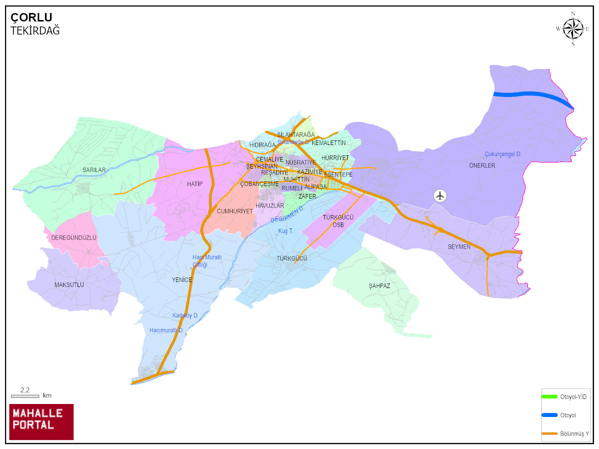 ÇORLU, TEKİRDAĞ Dijital Haritası | Güncel Mahalle ve İlçe Haritası