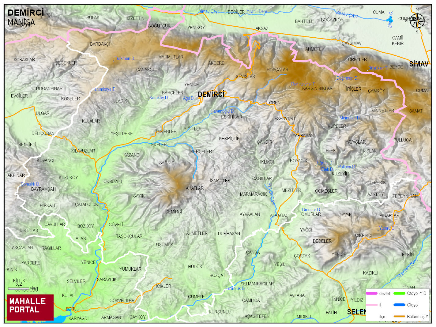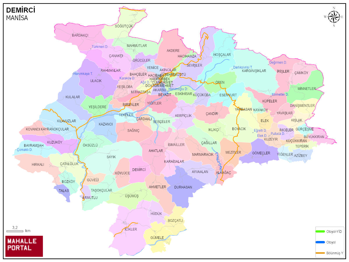 DEMİRCİ, MANİSA Dijital Haritası | İnteraktif İlçe ve Mahalle Sınırları