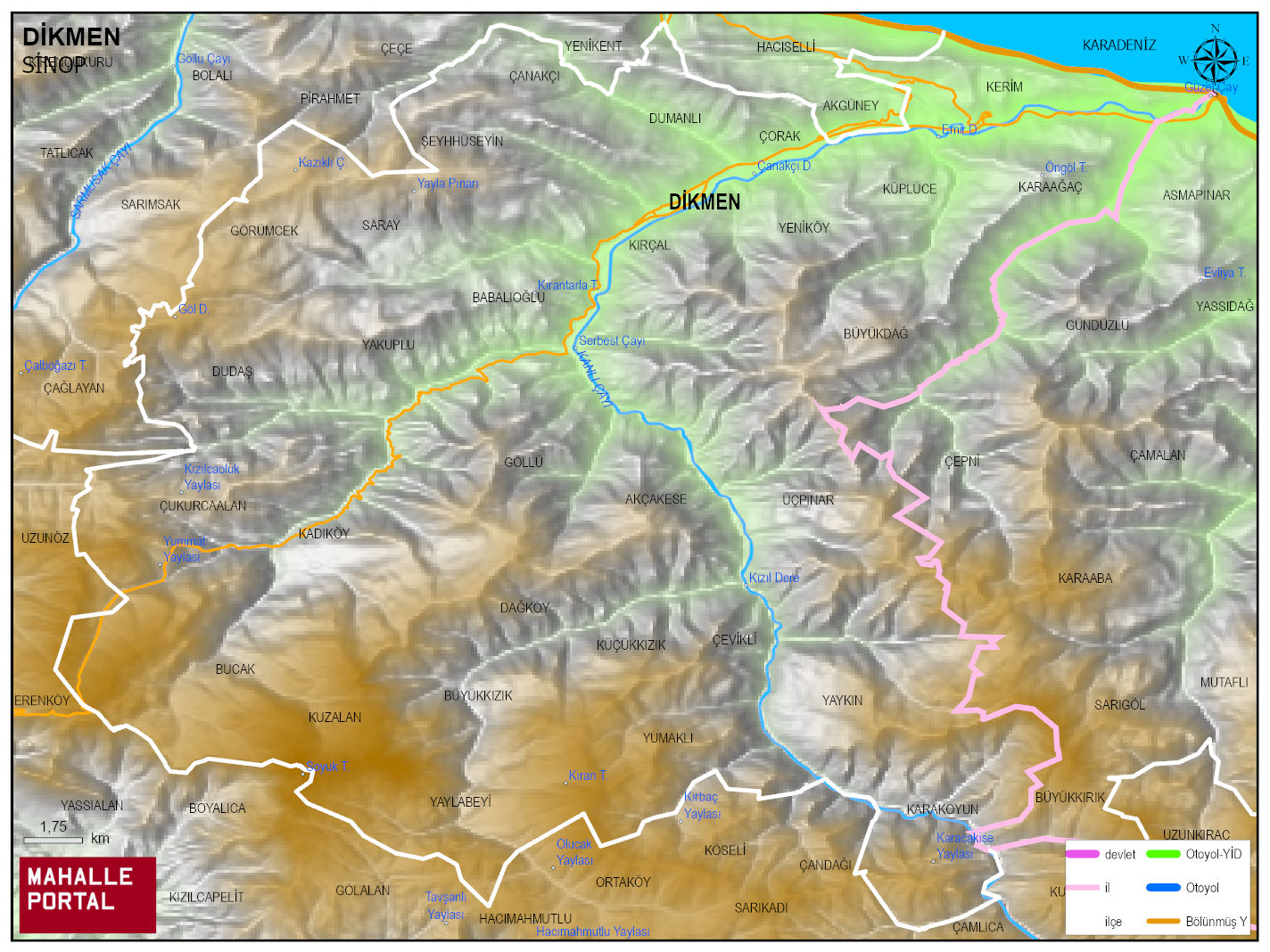 DİKMEN, SİNOP Dijital Haritası | İnteraktif İlçe ve Mahalle Sınırları