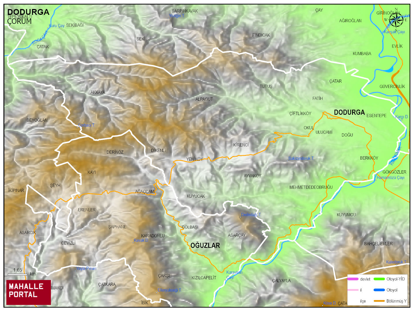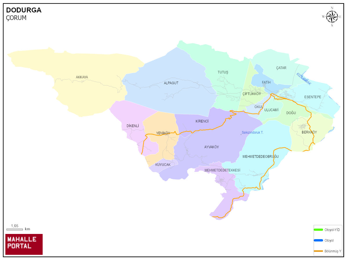 DODURGA, ÇORUM Dijital Haritası | İnteraktif İlçe ve Mahalle Sınırları