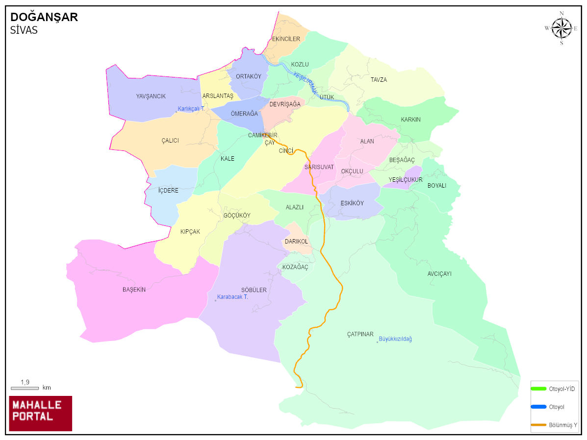 DOĞANŞAR, SİVAS Dijital Haritası | İnteraktif İlçe ve Mahalle Sınırları