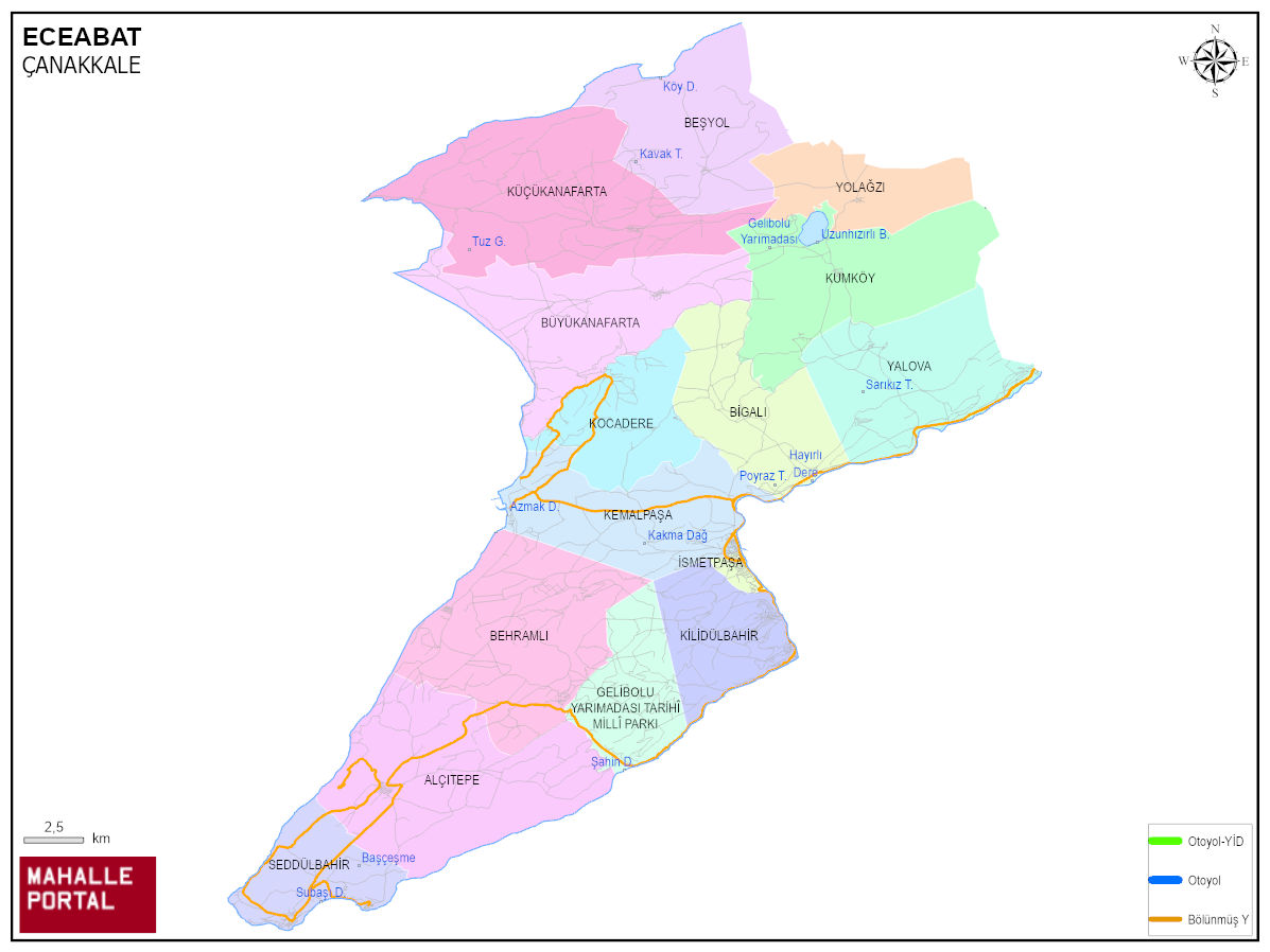 ECEABAT, ÇANAKKALE Dijital Haritası | İnteraktif İlçe ve Mahalle Sınırları