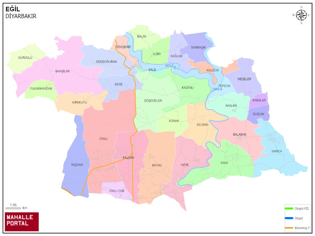 EĞİL, DİYARBAKIR Dijital Haritası | İnteraktif İlçe ve Mahalle Sınırları