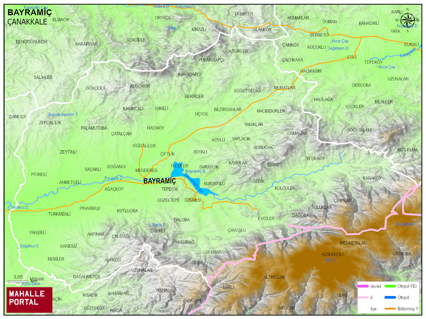 BAYRAMIÇ Physical Map | Mountains, Rivers and Elevation Details