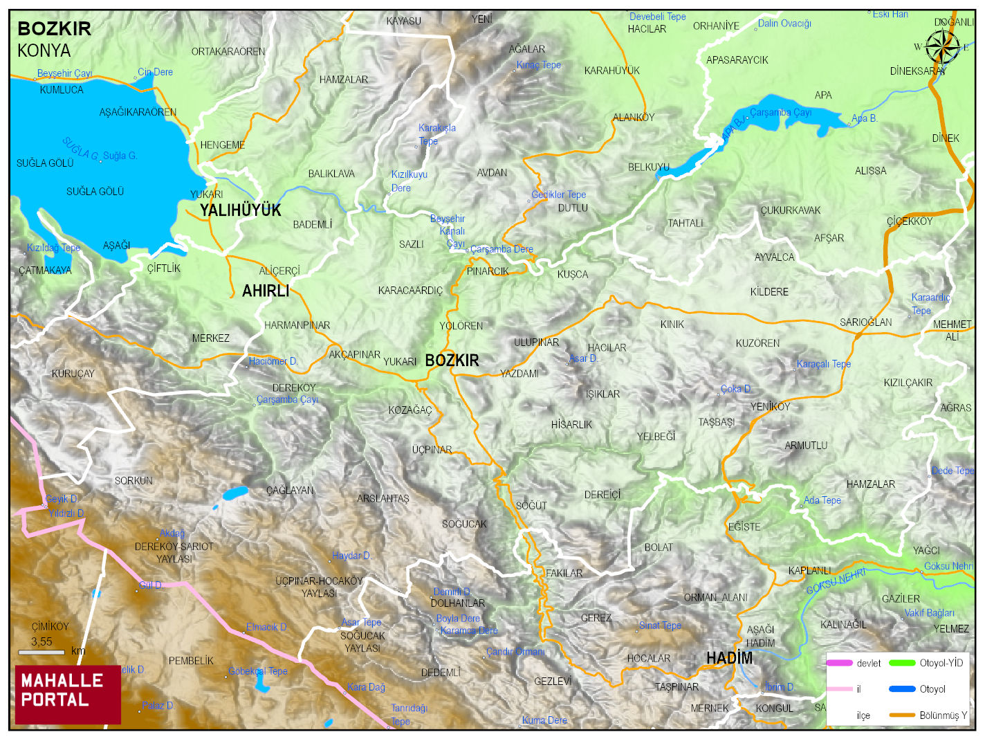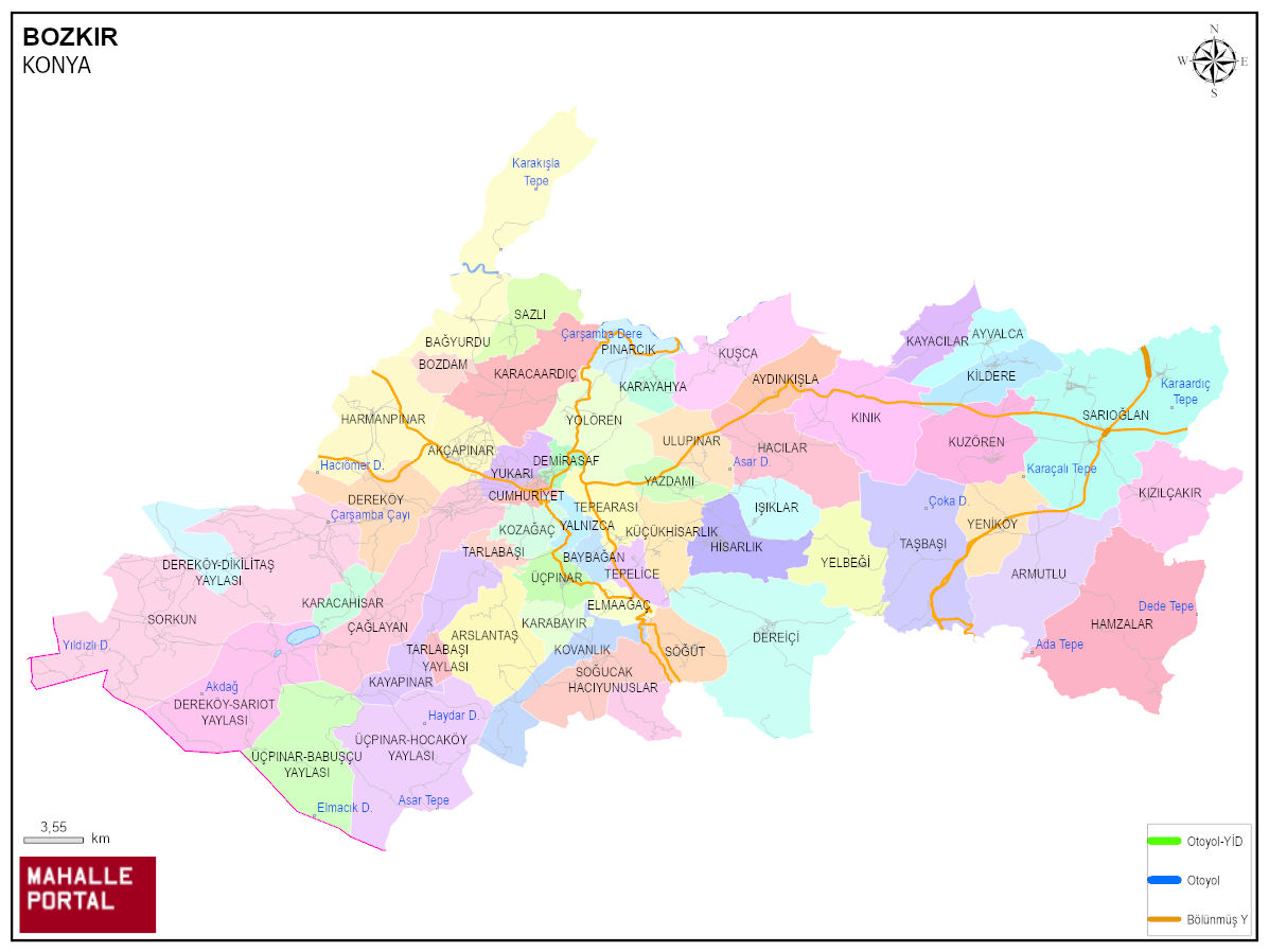 BOZKIR, KONYA Digital Map | Interactive District and Neighbourhoods