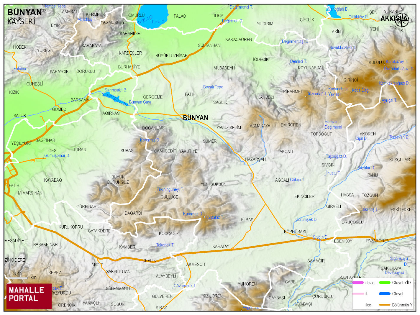 BÜNYAN, KAYSERI Digital Map | Interactive District and Neighbourhoods