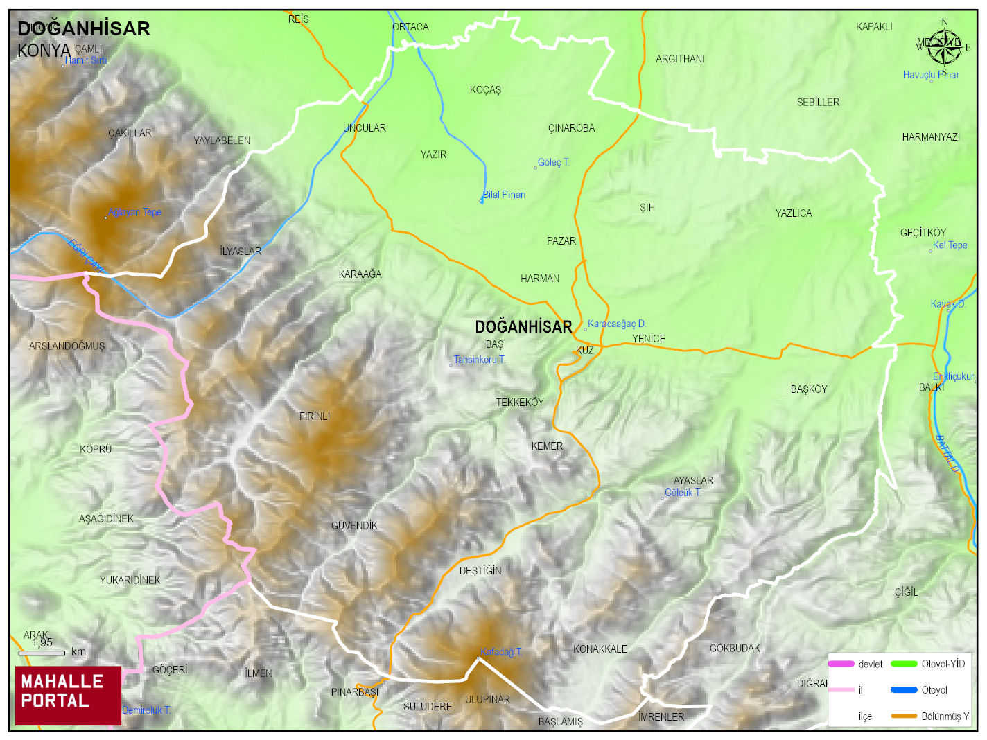 DOGANHISAR, KONYA Digital Map | Interactive District and Neighbourhoods