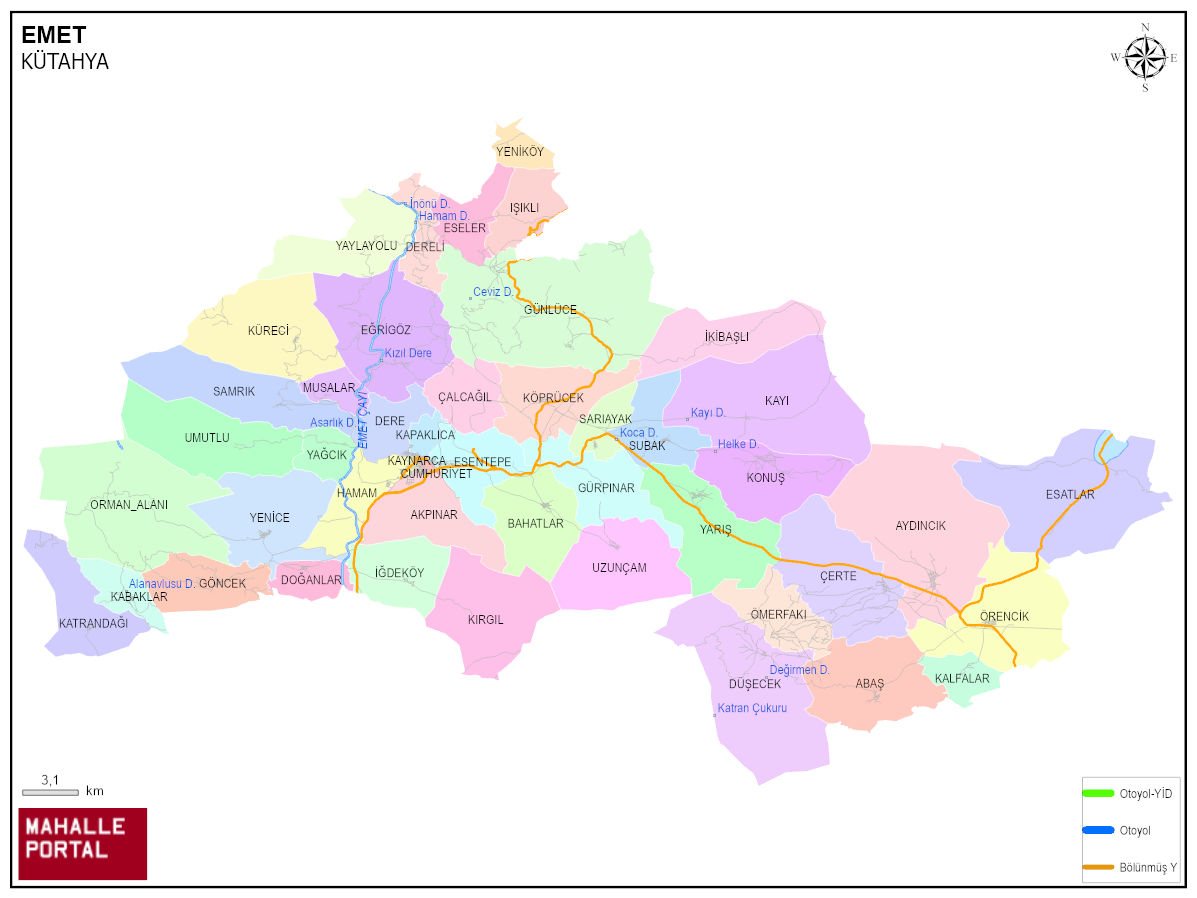 EMET, KÜTAHYA Digital Map | Interactive District and Neighbourhoods