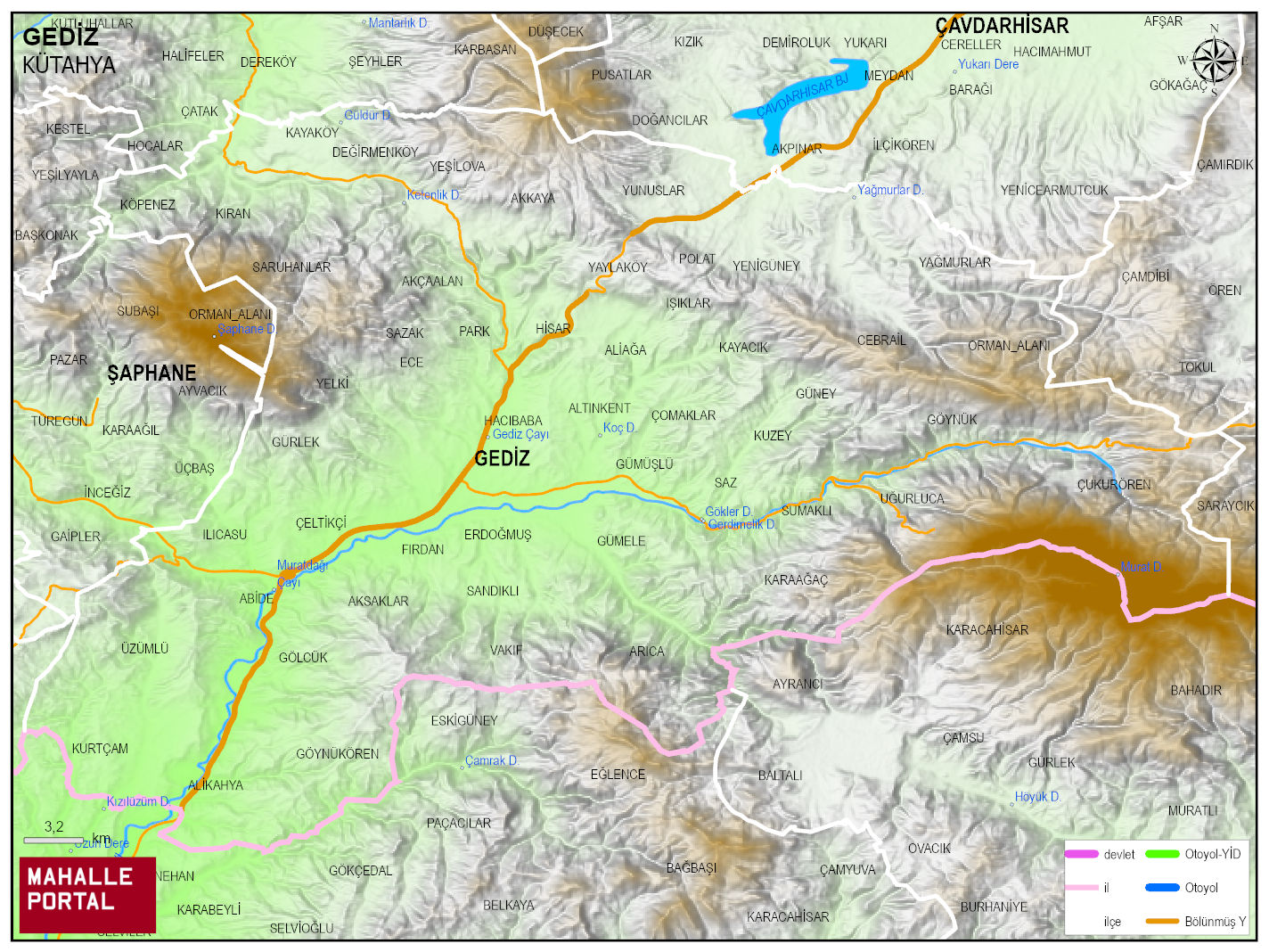 GEDIZ, KÜTAHYA Digital Map | Interactive District and Neighbourhoods