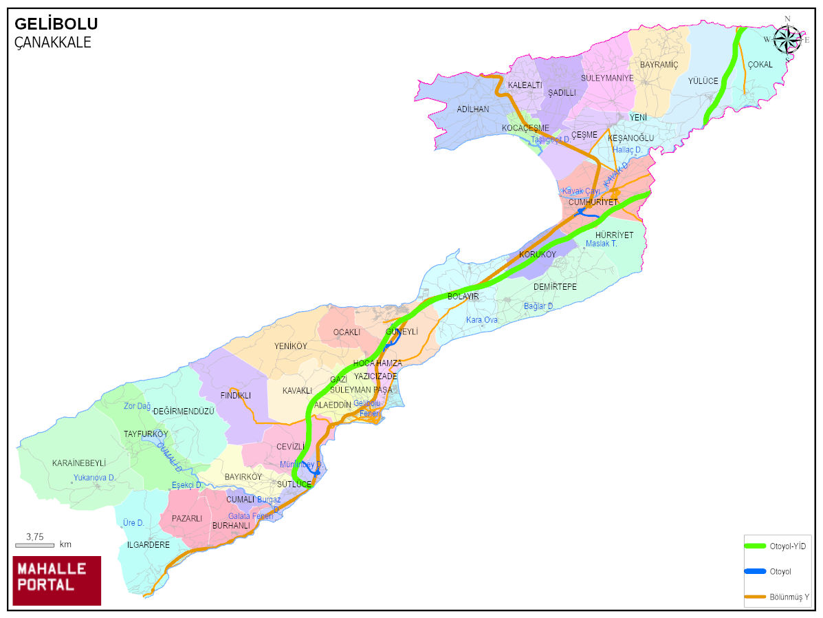 GELIBOLU Neighbourhood Map | Boundaries of District Villages