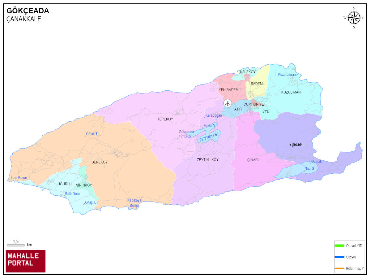 GÖKÇEADA Neighbourhood Map | Boundaries of District Villages